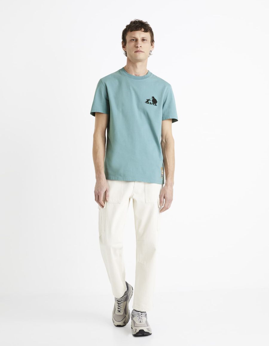 celio débarque avec une collection Astérix à l'occasion de la sortie du tant attendu film Astérix et Obélix : l'Empire du Milieu. Ce t-shirt bleu gris pour homme représente, à l'avant, le trio incontournable Astérix, Obélix et Idéfix en route vers de nouv