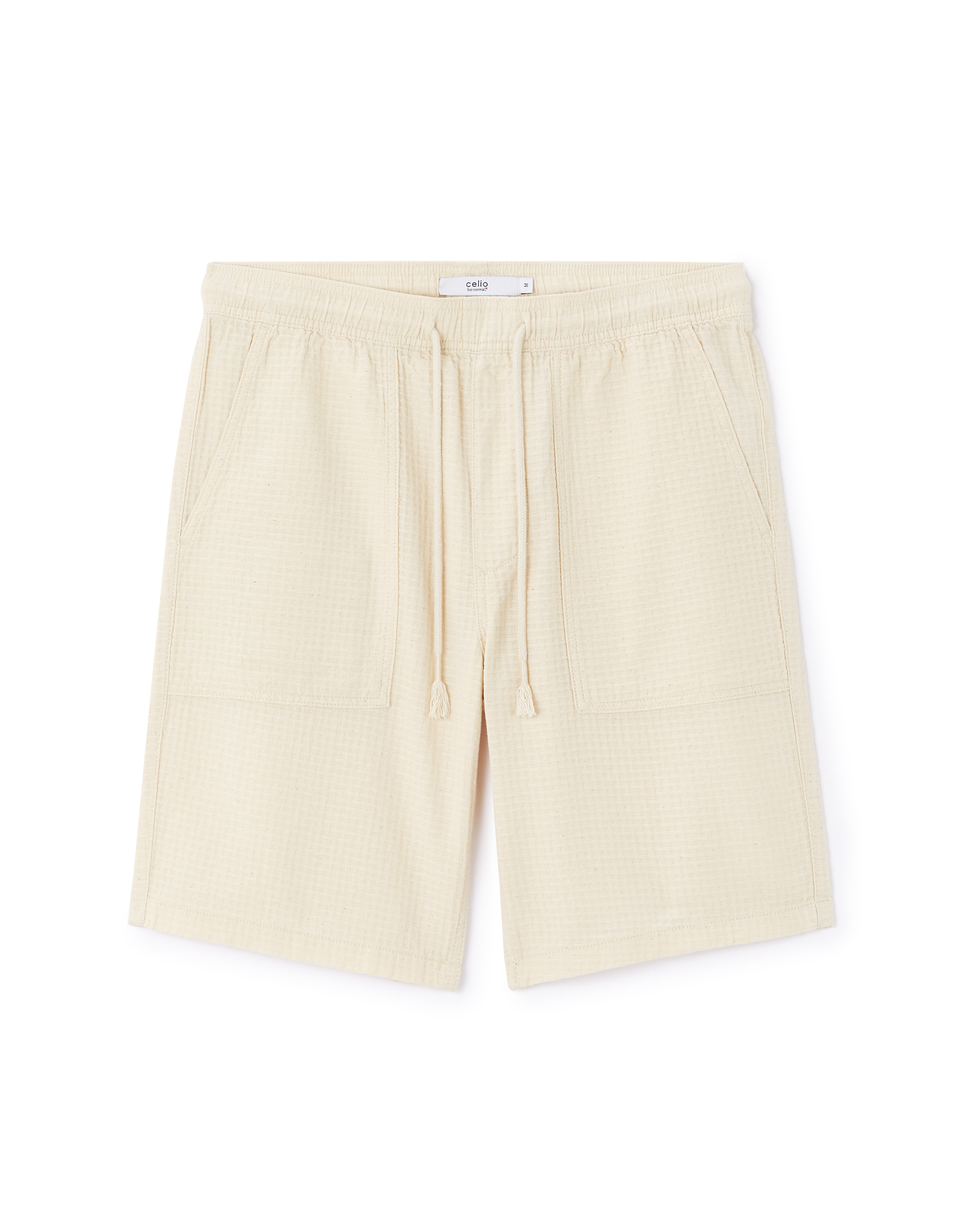 - Long bermuda beige en tissu gaufré