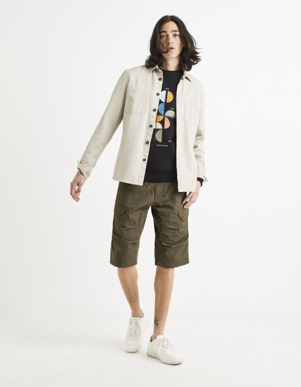 Ce bermuda long pour homme pourra être facilement porté avec des baskets et un t-shirt. Vous apprécierez son côté pratique et son confort, avec ses deux poches à rabat sur les cuisses et son tissu à la composition 100 % coton.