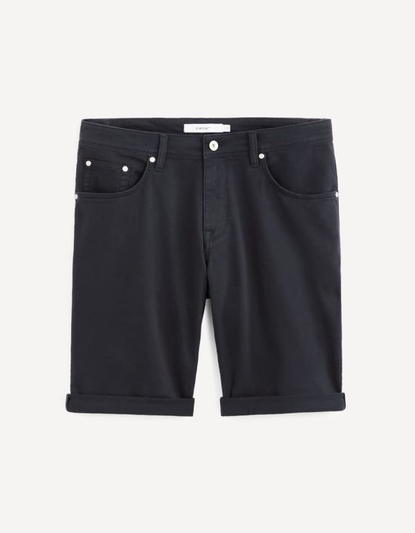Voici le bermuda slim dont on ne peut se passer ! Sa matière extensible apporte un grand confort. Son revers et le détail des rivets aux coins des 5 poches renforcent son style basique parfait au quotidien ! Ce short posséde 5 poches dont 2 poches arrière