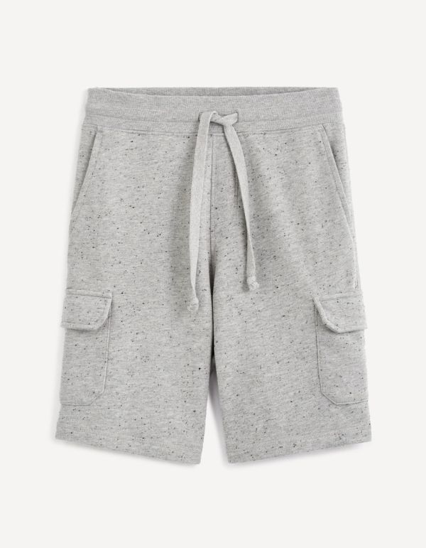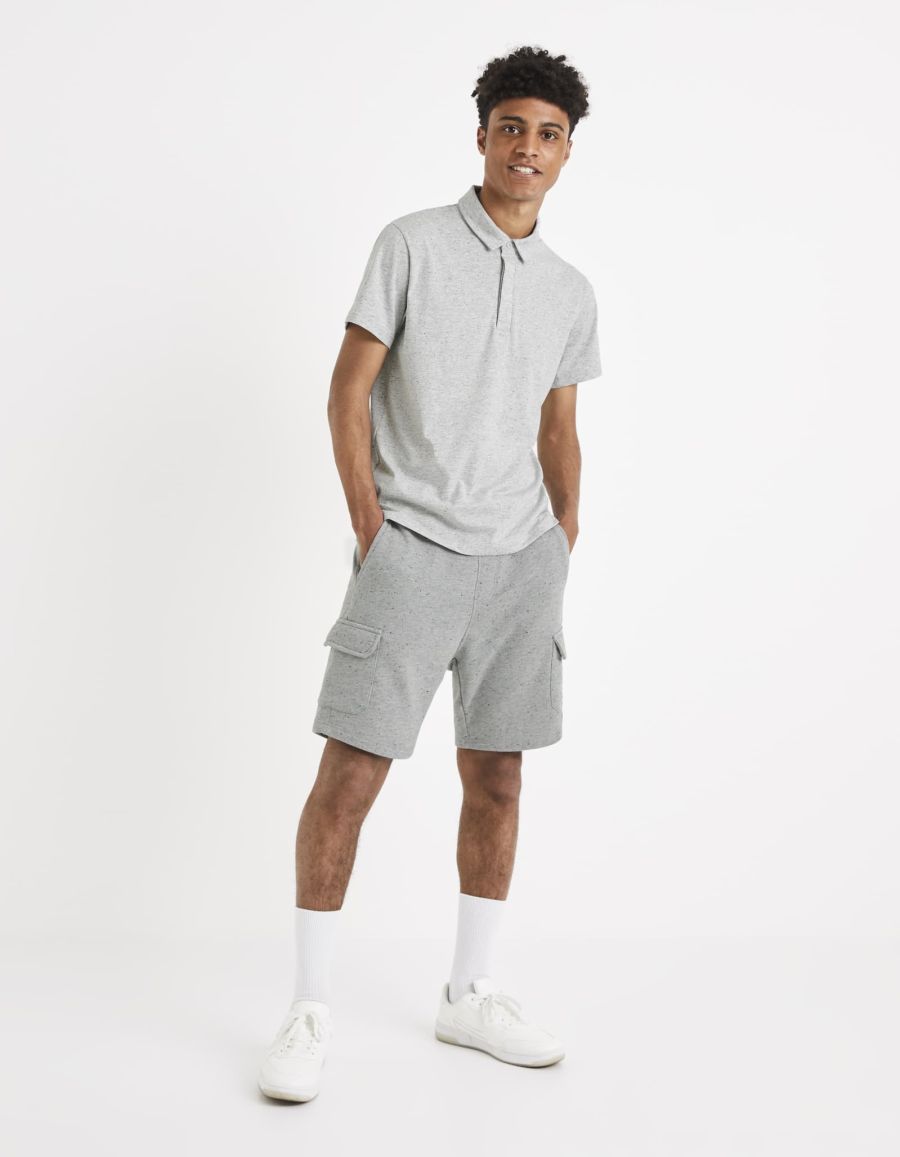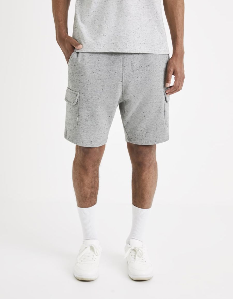 Ce jogging pour homme sera parfait pour un look confort. Sa taille est élastiquée, avec cordon de serrage. Le bermuda a également deux poches cargo sur les côtés. Son tissu chiné pourra facilement être assorti à un t-shirt tendance.