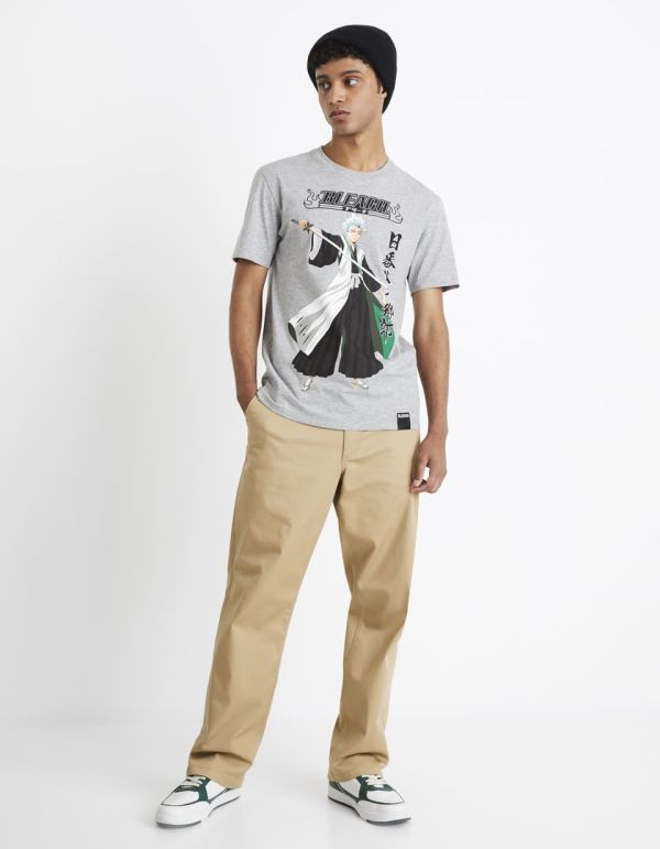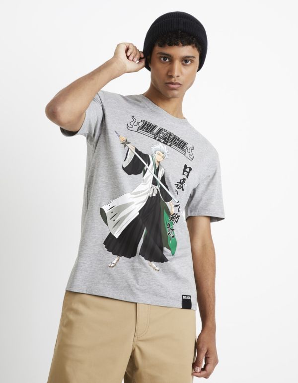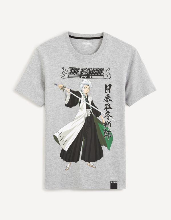 Ce t-shirt gris chiné à l’effigie d’Hitsugaya Toshiro te permettra de l’accompagner dans la 10ème division ou la Squad 10 comme on l’appelle et qui est écit en japonais à l’avant du t shirt. T-shirt pour homme du célèbre manga BLEACH.