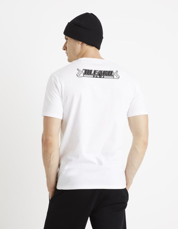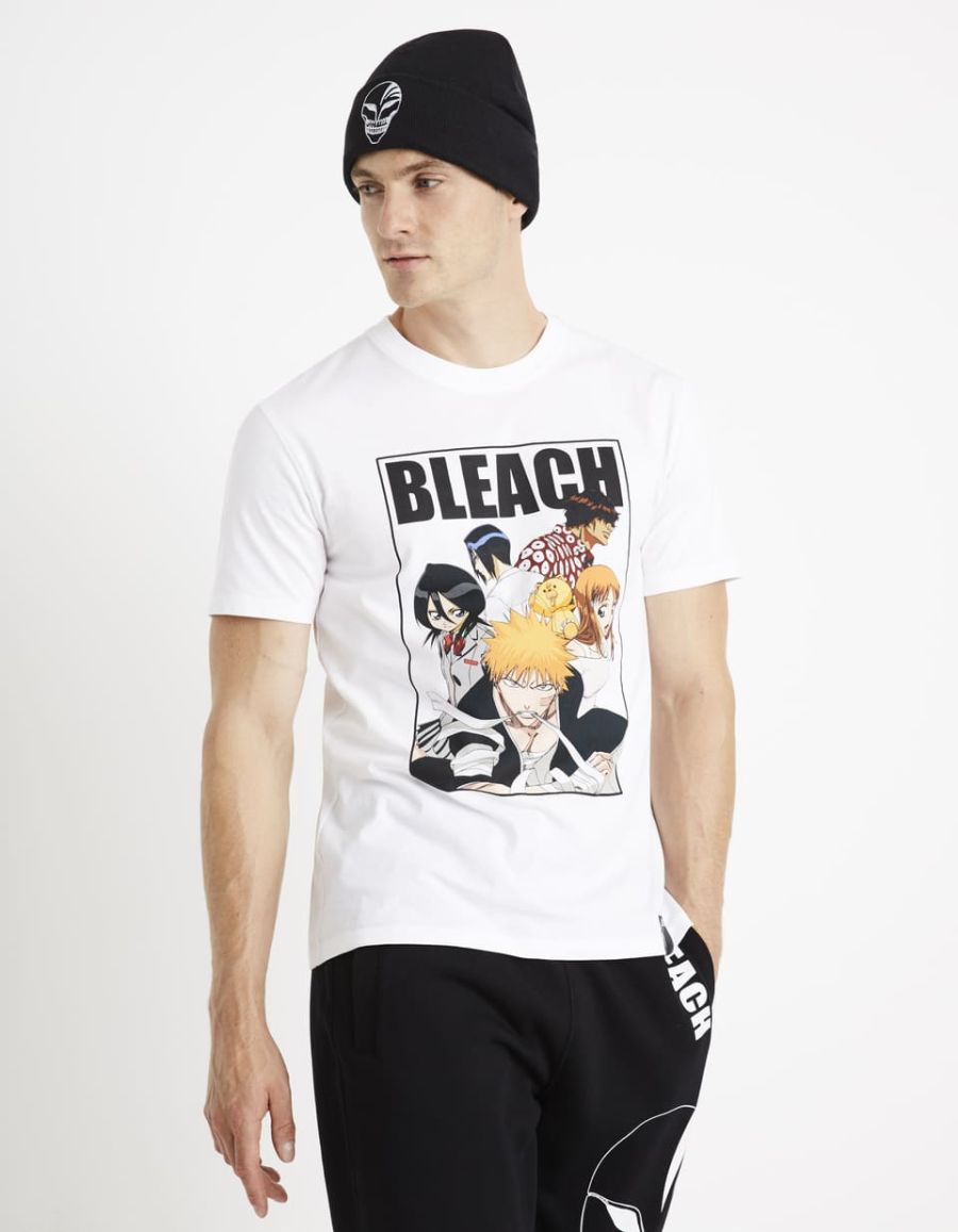 Ce t shirt blanc à l’effigie des personnages de Bleach est un indispensable dans ta garde-robe ! Enfile ce t shirt et arbore fièrement le portrait de tes personnages préférés : Kurosaki Ichigo, le personnage principal, Rukia Kuchiki, la shinigami qui lui