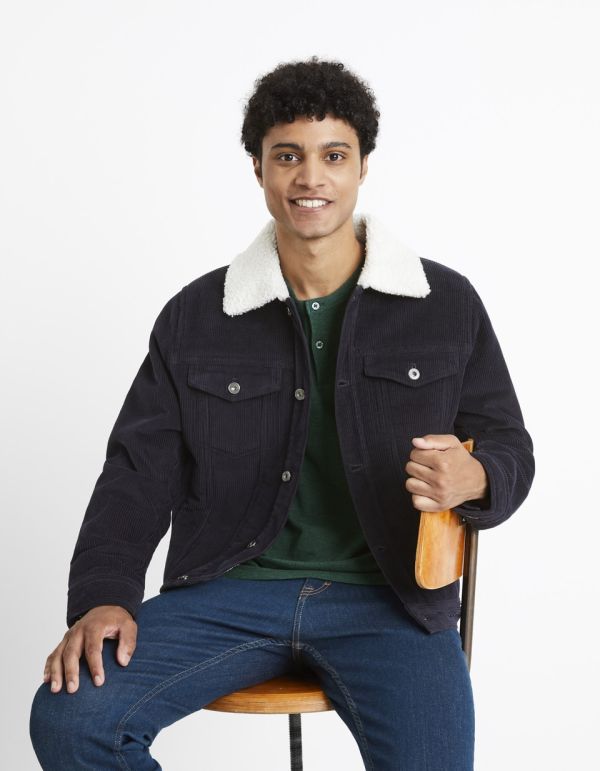 L'alliance du velours et du sherpa se retrouve dans ce blouson homme pour en faire un vêtement très tendance à l'esprit rétro cool. C'est un blouson trucker avec quatre poches extérieures, dont deux boutonnées sur la poitrine, et une fermeture à boutons é