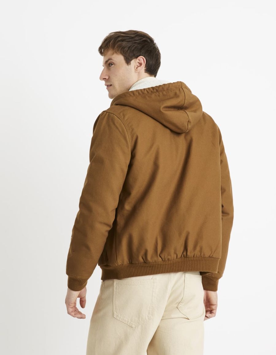 Blouson zippé avec capuche doublée sherpa - camel