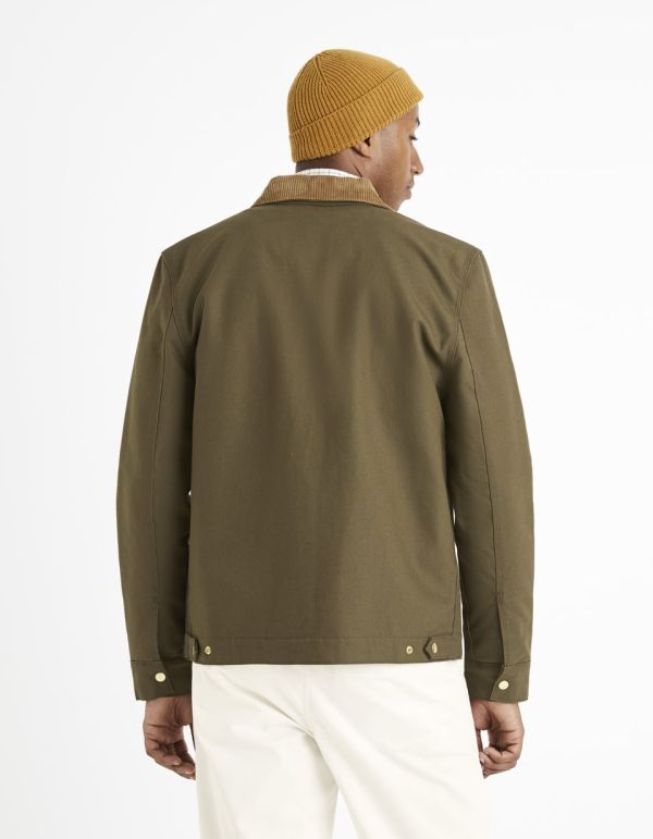 Avec son col chemise velours et son coloris kaki, ce blouson homme est la veste qu'il vous faut pour compléter un look casual cool. Le blouson se portera facilement avec un jean comme avec un chino. Il se ferme avec un zip est équipé de boutons pressions