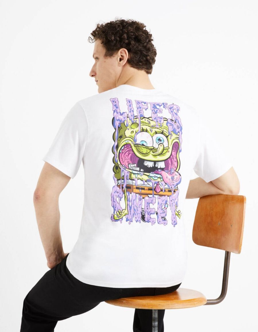 T-shirt blanc à manches courtes pour homme Bob l'éponge.