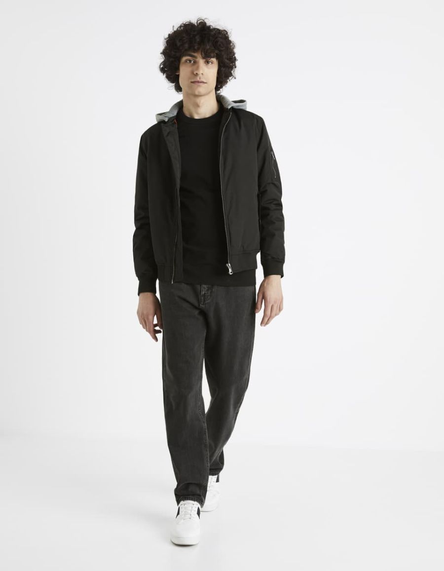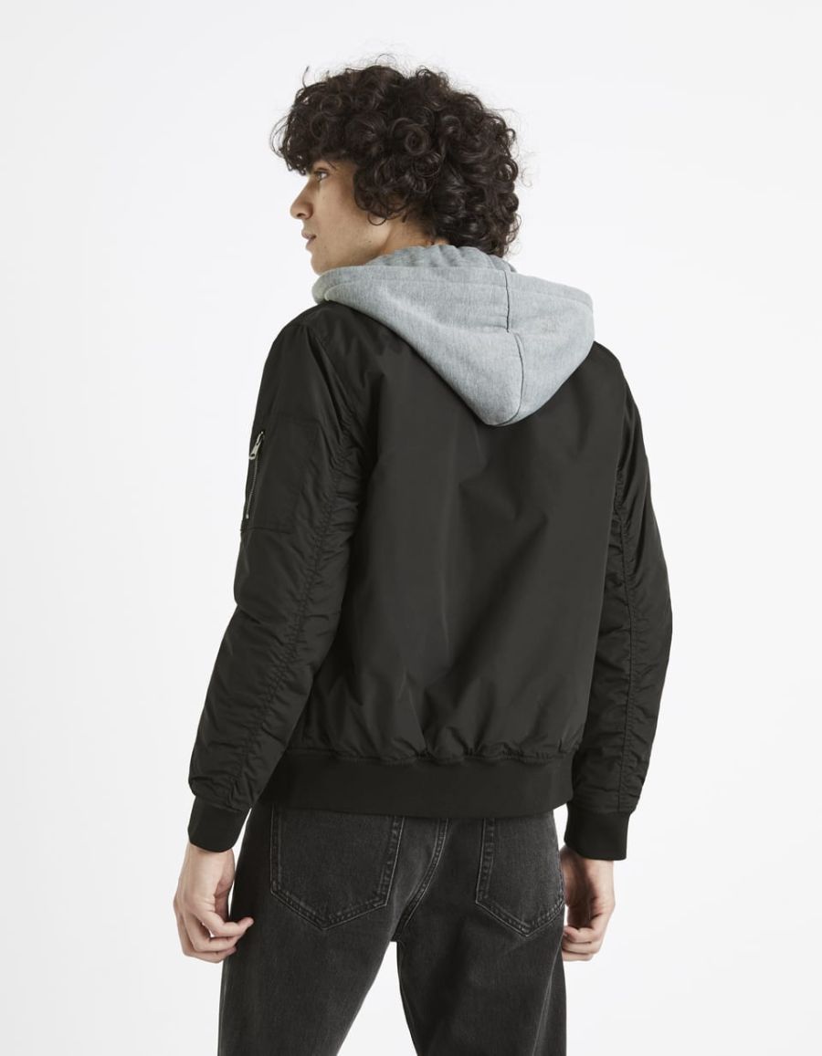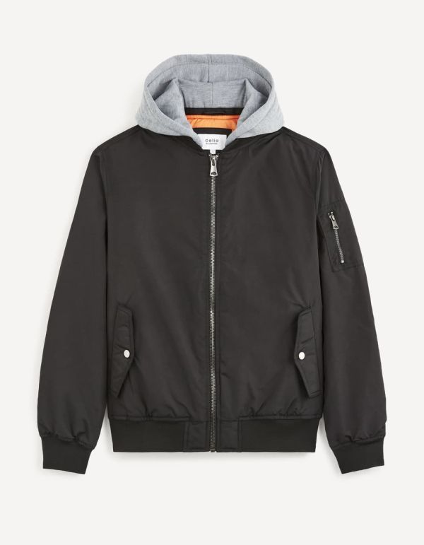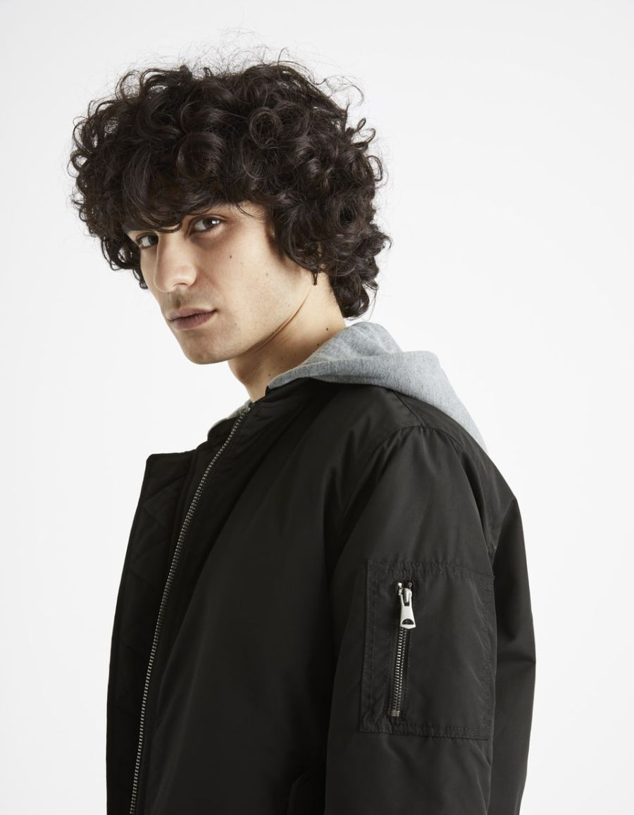 Bomber à capuche molleton - noir