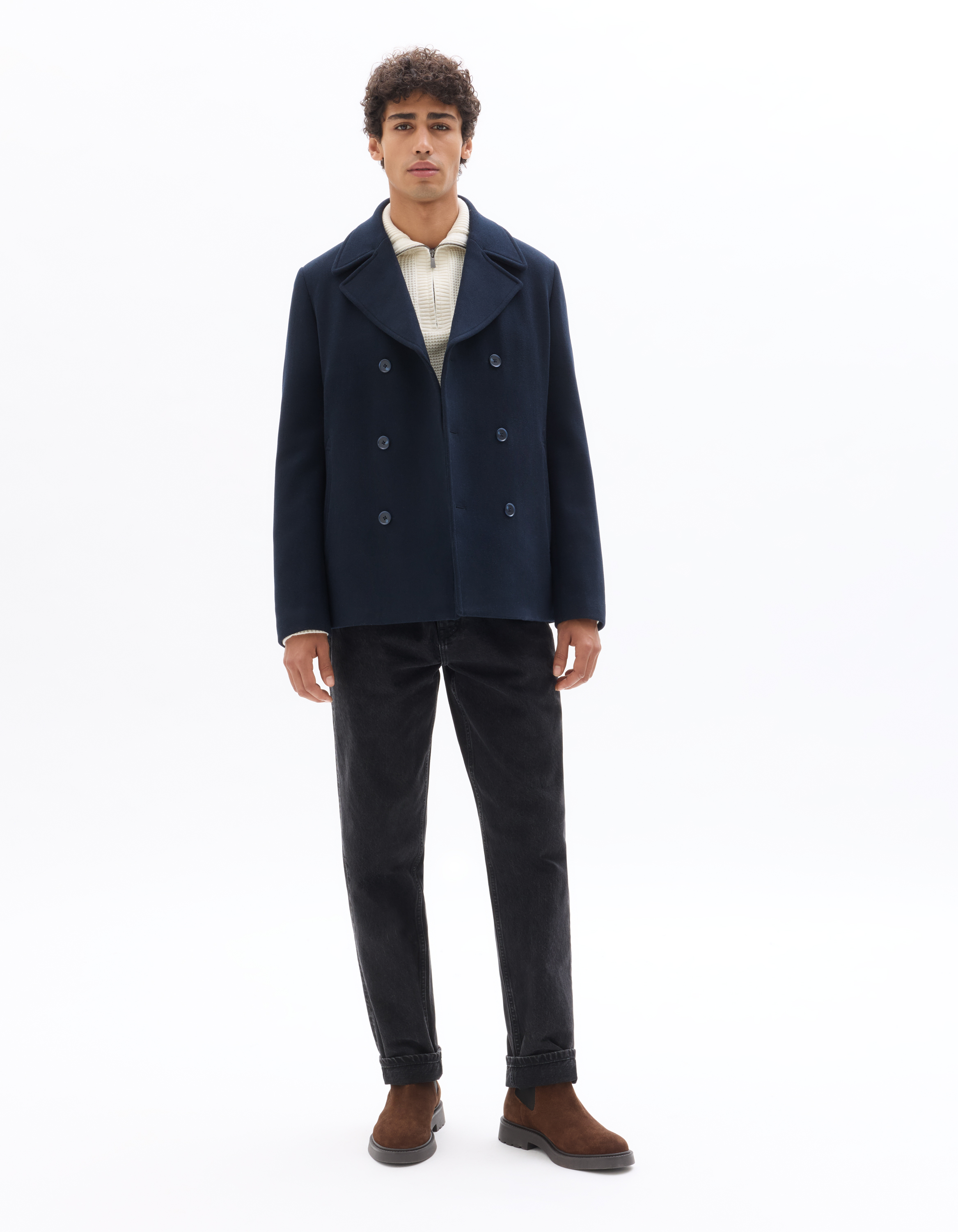 L'élégance au masculin se révèle avec ce caban pour homme, une pièce essentielle et raffinée.