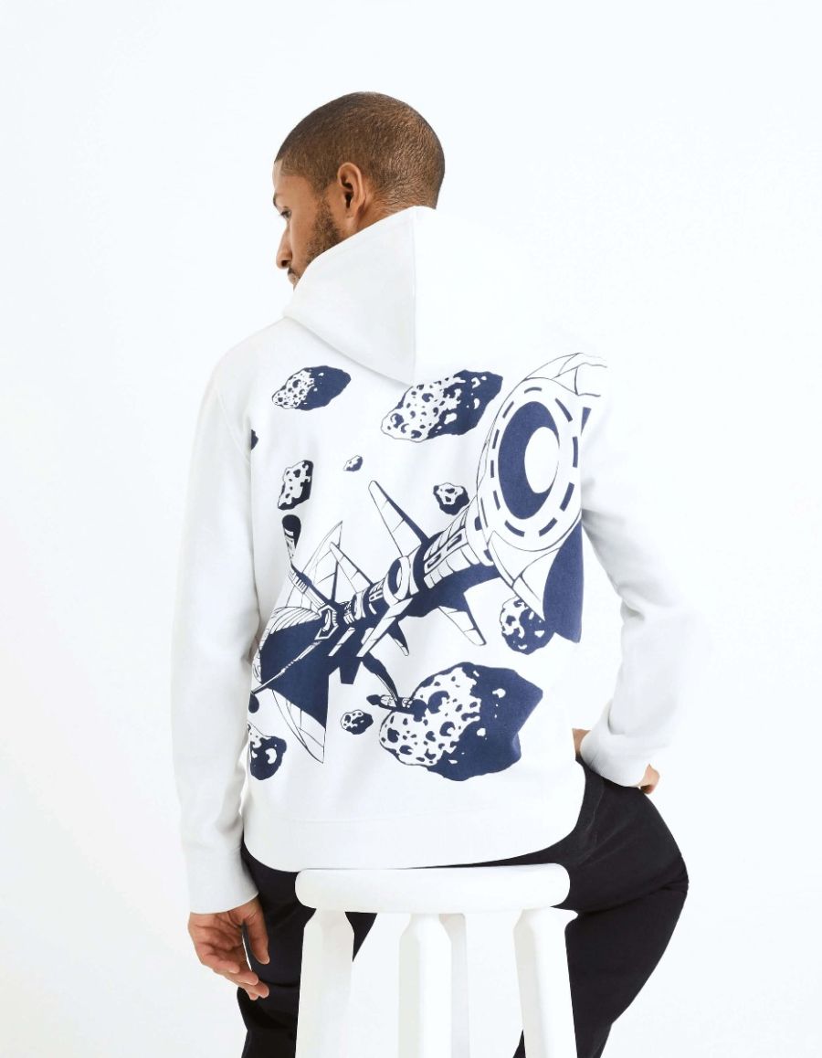 Vous pensez "Capitaine Flam" et vous entendez tout de suite le générique de ce célèbre dessin animé des années 80 ? Alors ce sweat-shirt pour homme a clairement été fait pour vous. Son imprimé est inspiré de l'univers de Capitaine Flam et il apportera un