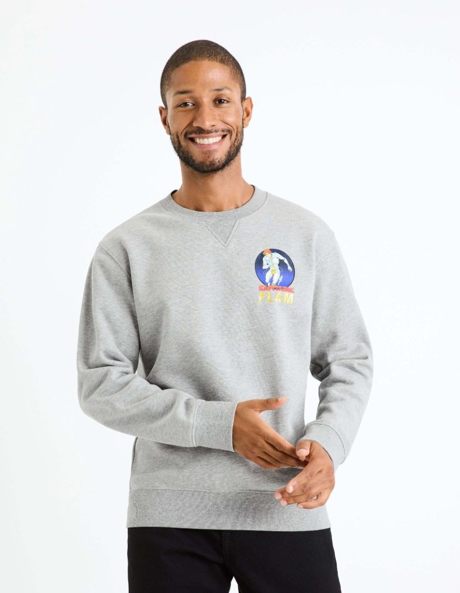 Ajoutez une touche fun et décalée à votre look en l'agrémentant de ce sweat-shirt pour homme qui rend hommage aux dessins animés de votre enfance. Le sweat-shirt est inspiré du dessin animé des années 80, Capitaine Flam, dont l'univers est repris dans le