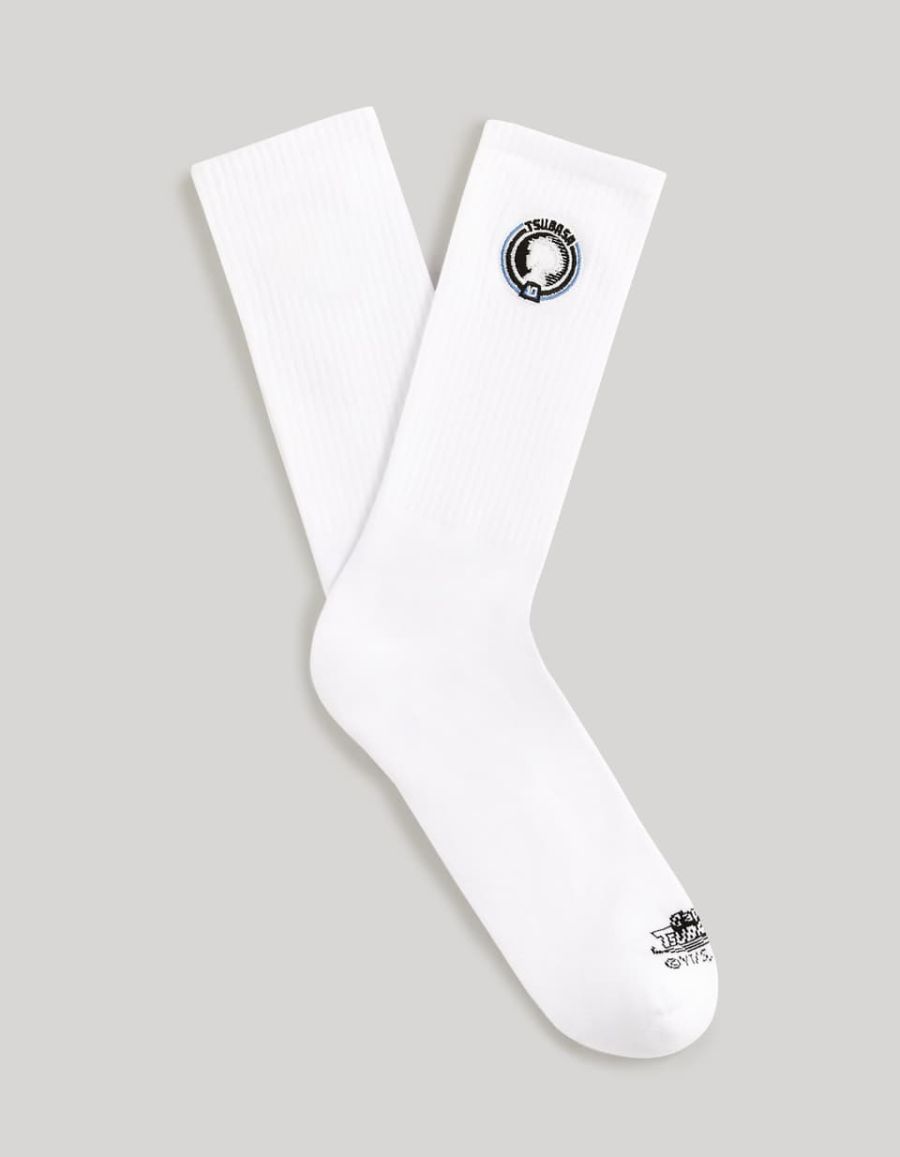 Trois paires de chaussettes brodées arborant les portraits des joueurs complètent la collection. Noires, grises ou blanches, le rappel de couleur se fait ici sur le contour des portraits des joueurs. Le logo de la série, lui, est situé sur le bout du pied