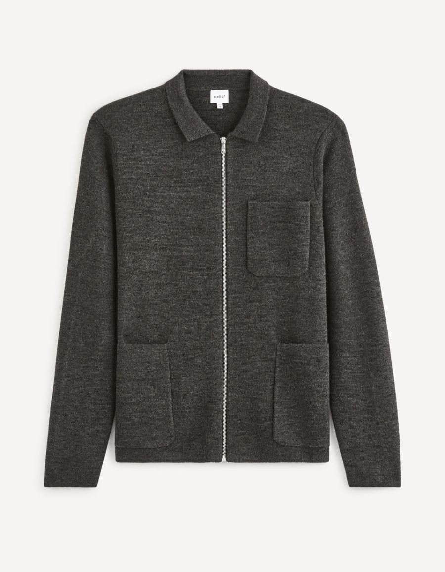 Veste zippée pour homme en maille milano. Cardigan ou surchemise peut importe le nom, cette veste sera parfaite pour la saison, multipoche, en laine acrylique, il sera parfait un jean et une chemise.
