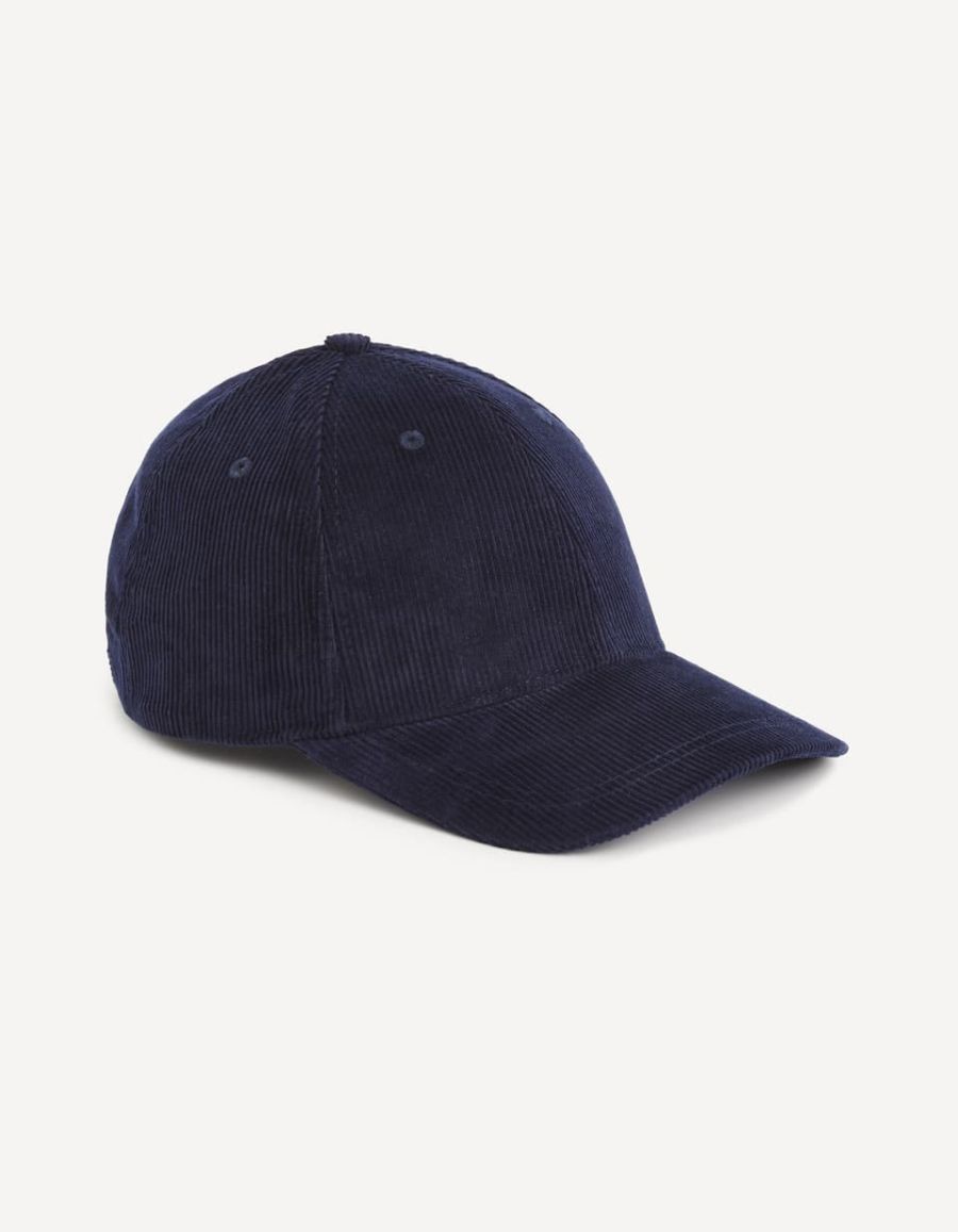 Casquette à visière courbée en velours côtelé avec lien de serrage à l'arrière.