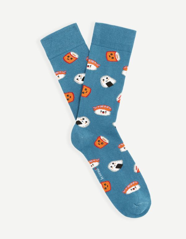 Chaussettes hautes pour homme motif sushi en coton mélangé pour un look tendance sans négliger le confort. Maintien en bords-côtes.