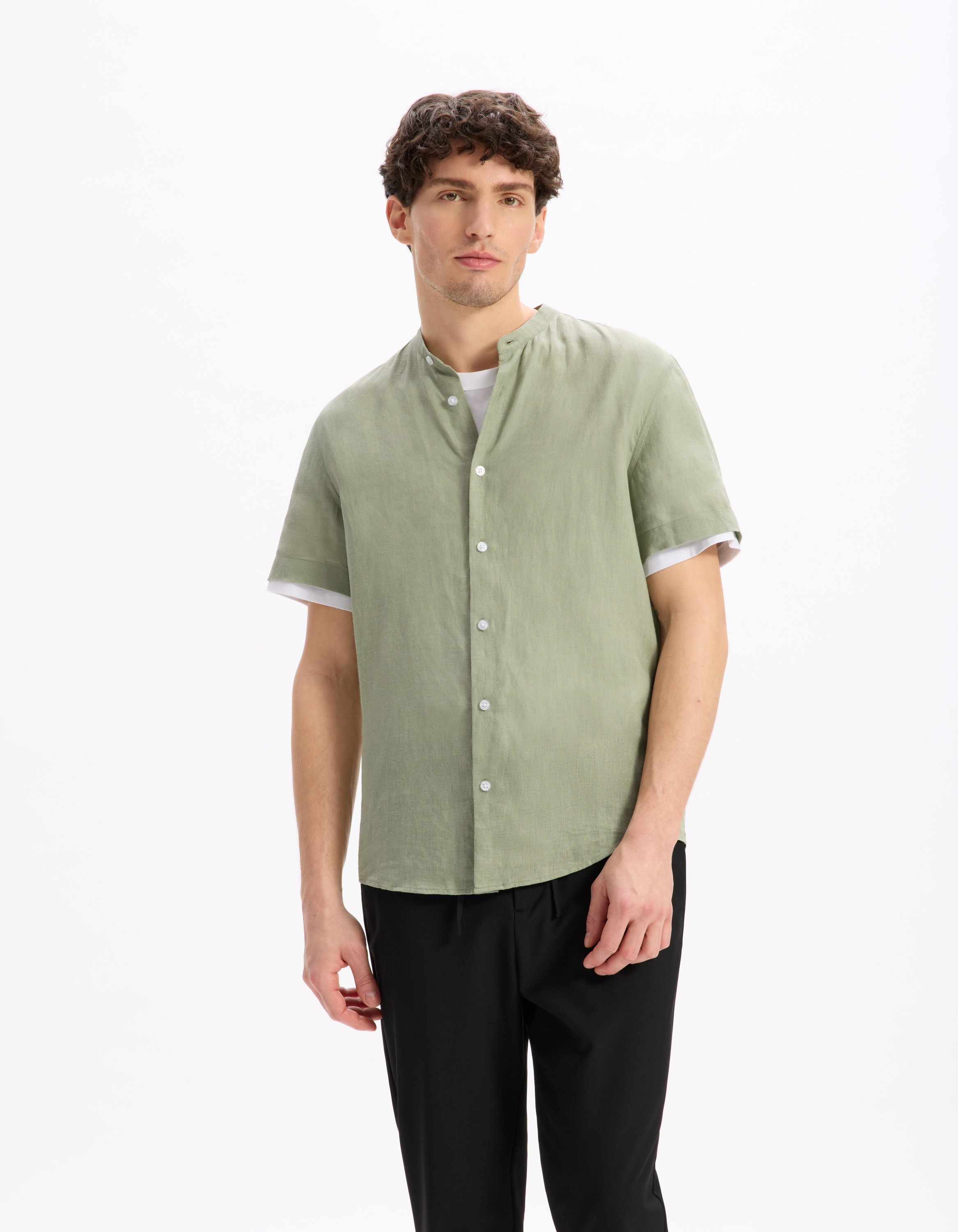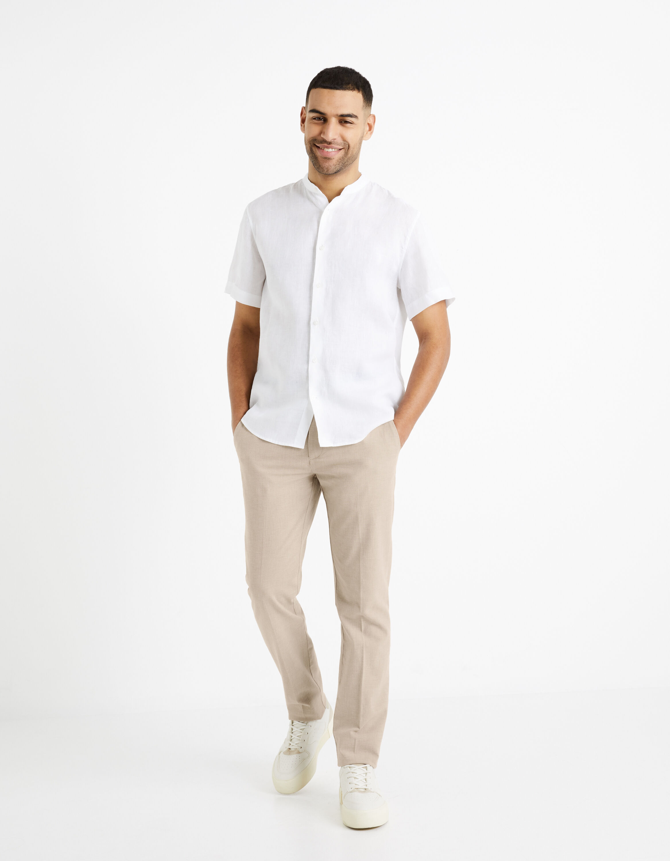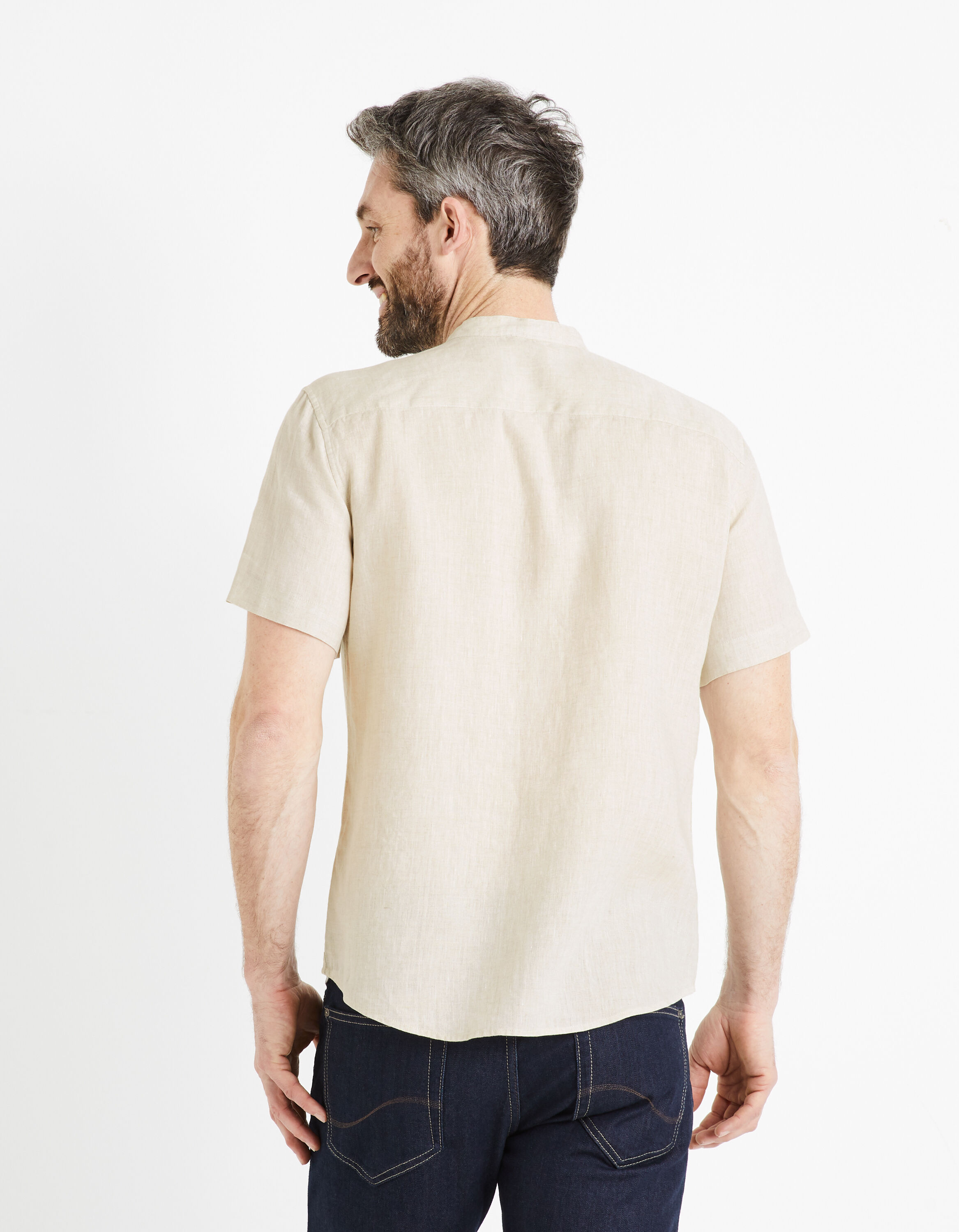 Avec sa matière naturelle 100 % lin, cette chemise homme à manches coeurtes est idéale pour l'été. Son col mao lui apporte le détail qui change tout, pour une élégance à l'esprit décontracté. Sa coupe droite accompagnera facilement un bermuda ou un pantal