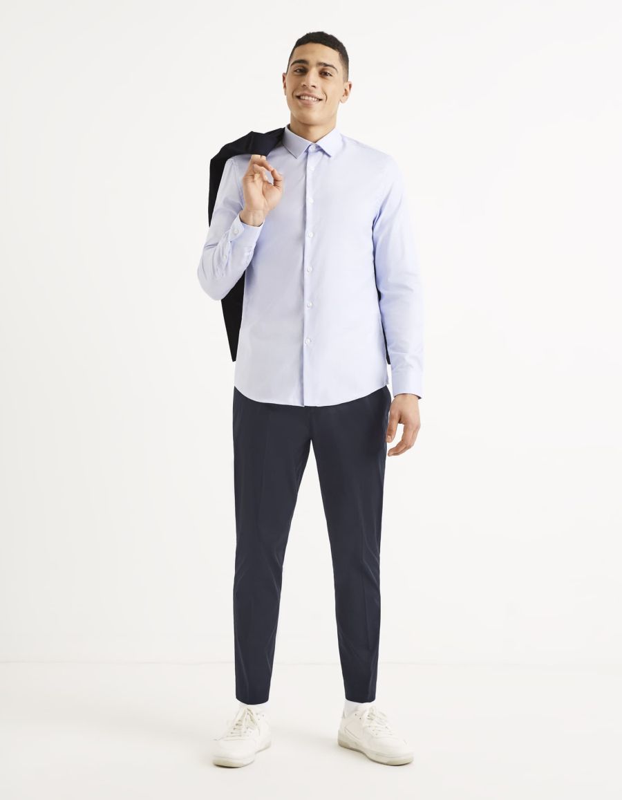 La simplicité élégante de cette chemise homme en fait un vêtement parfait pour accompagner un costume, mais également un chino, dans un esprit plus casual chic. Avec une composition 100 % coton, son tissu est très agréable à porter. Les manches sont longe