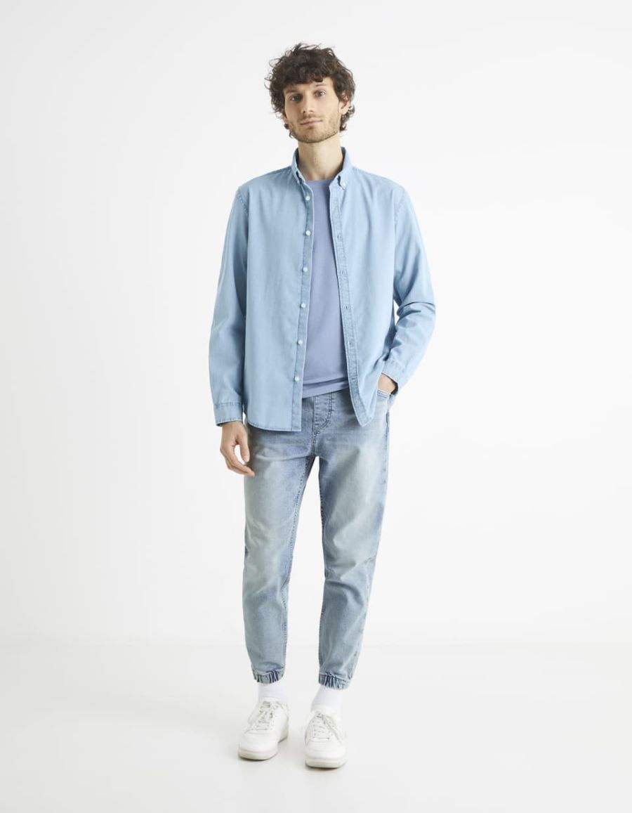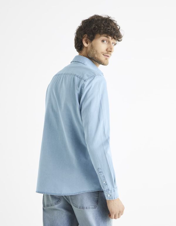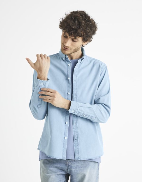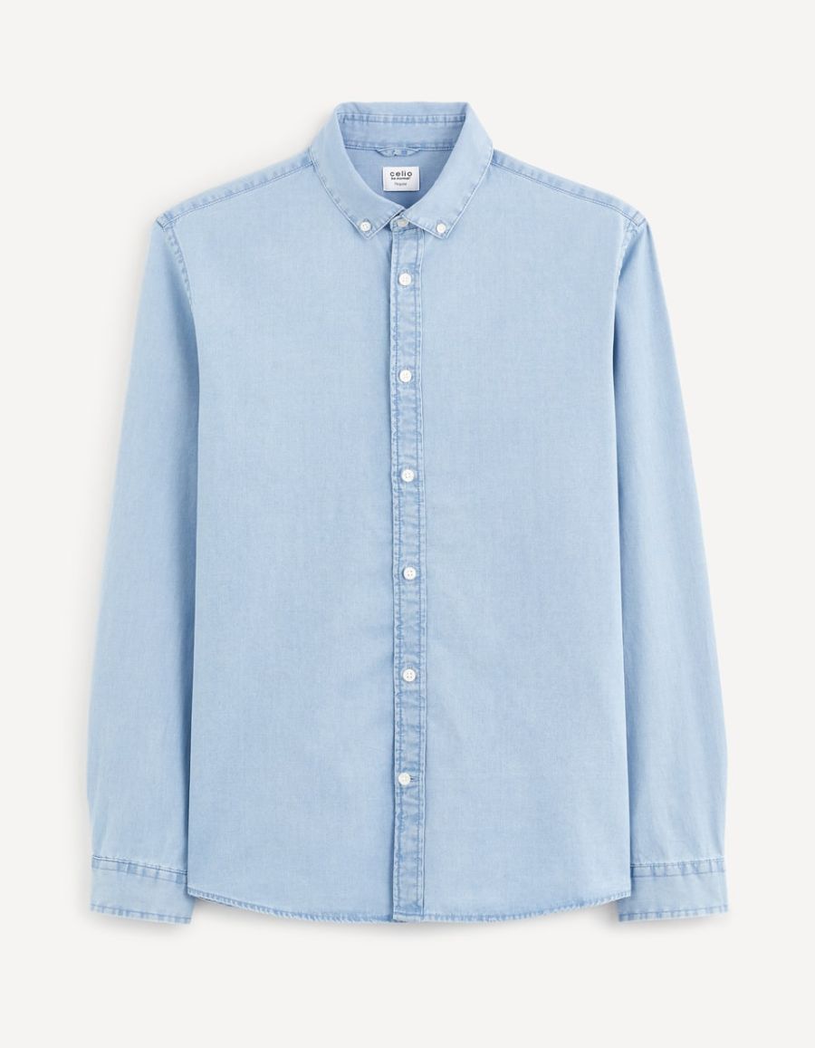 Pièce indispensable du vestiaire masculin, cette chemise légère pour homme peut se porter avec un jean et des baskets pour un total look denim. Cette chemise regular en denim 100 % coton, elle ferme par des boutons et possède un col boutonné.