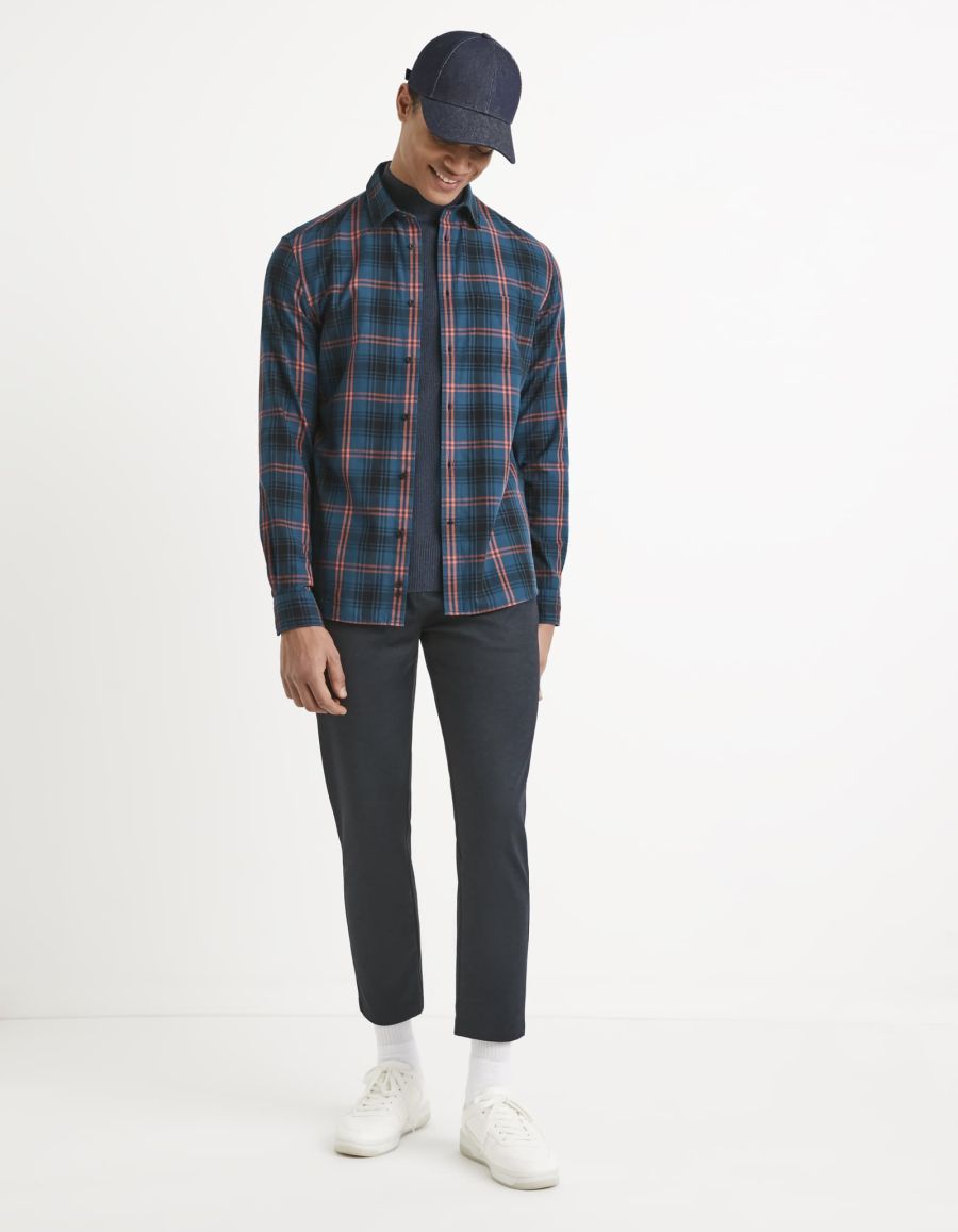 Coup de cœur pour le look hipster cool avec cette chemise à carreaux pour homme. Chemise à manches longues avec un col français, elle se portera aussi bien ouverte sur un t-shirt que boutonnée. Son tissu est 100 % coton. Le modern fit est une coupe entre