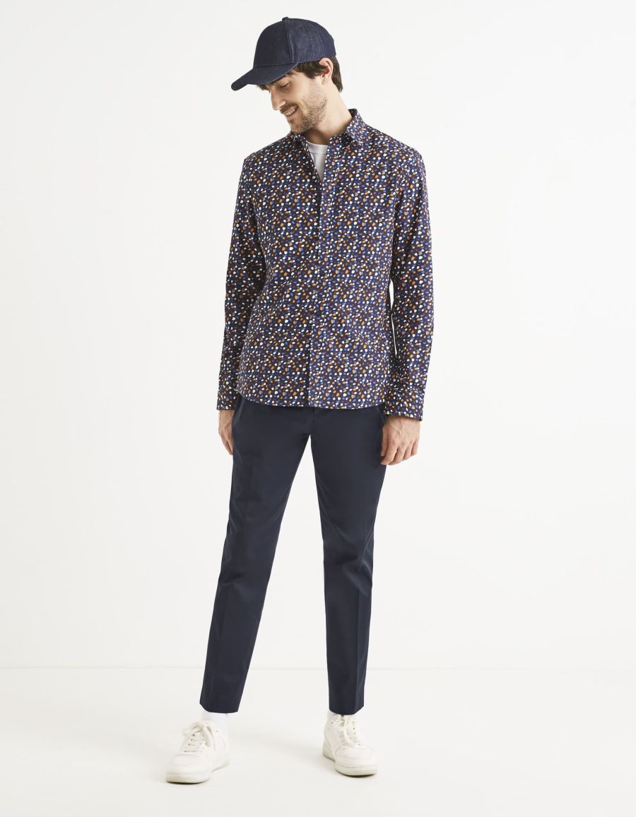 Portez cette chemise pour homme avec un jean et des baskets blanches pour un style casual chic. Cette chemise imprimée a une coupe modern fit, un col français et des manches longues. Elle est en 100% popeline de coton. Le modern fit est une coupe entre le