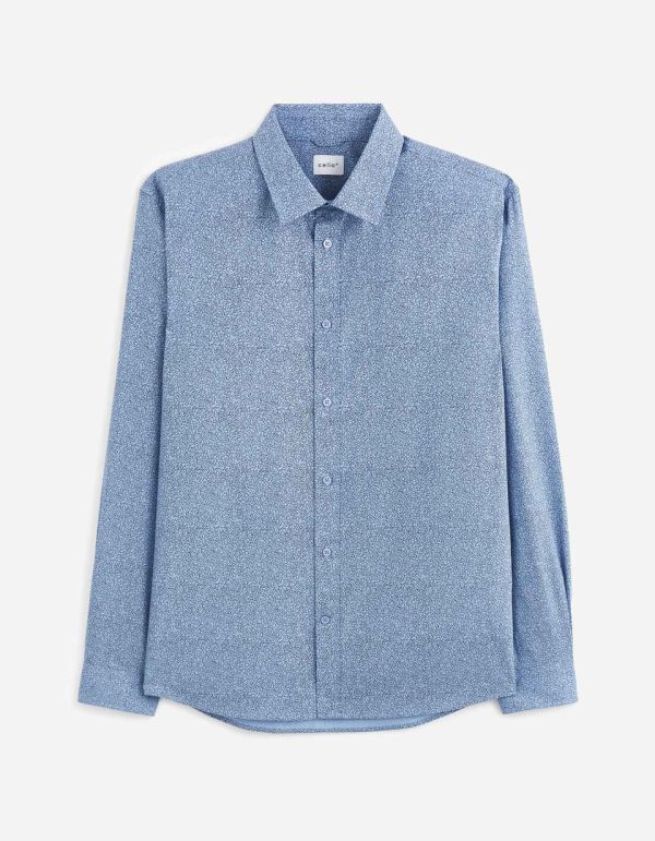 Adoptez cette chemise modern fit pour homme en 100% popeline de coton imprimée pour accompagner un jean ou un chino. Son motif discret mais original lui confère un esprit casual chic. Cette chemise a des manches longues et un col français. Le modern fit e