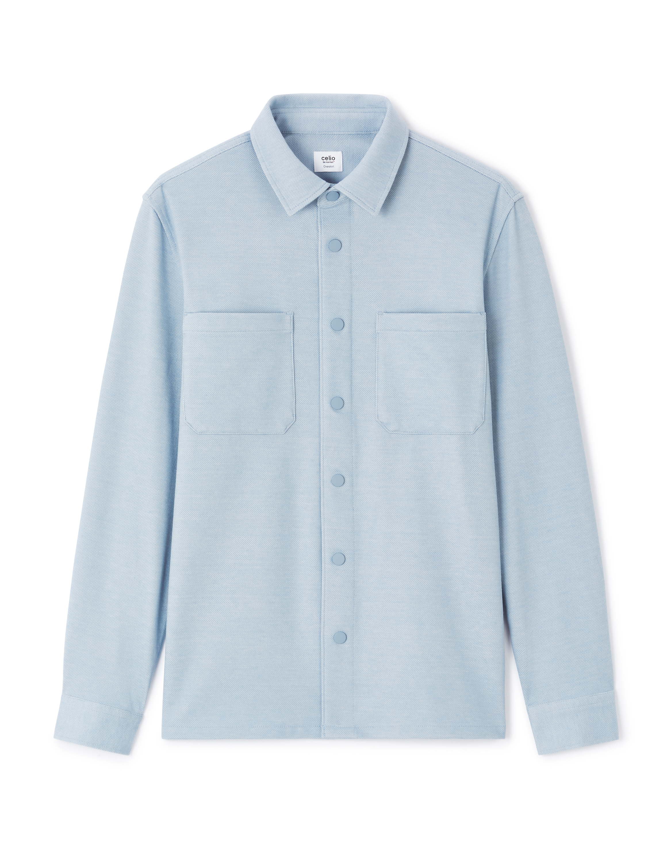 Chemise overshirt unie 100% coton stretch - bleu clair