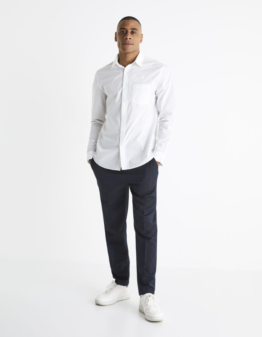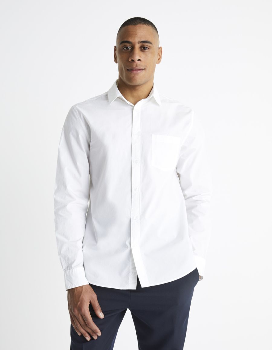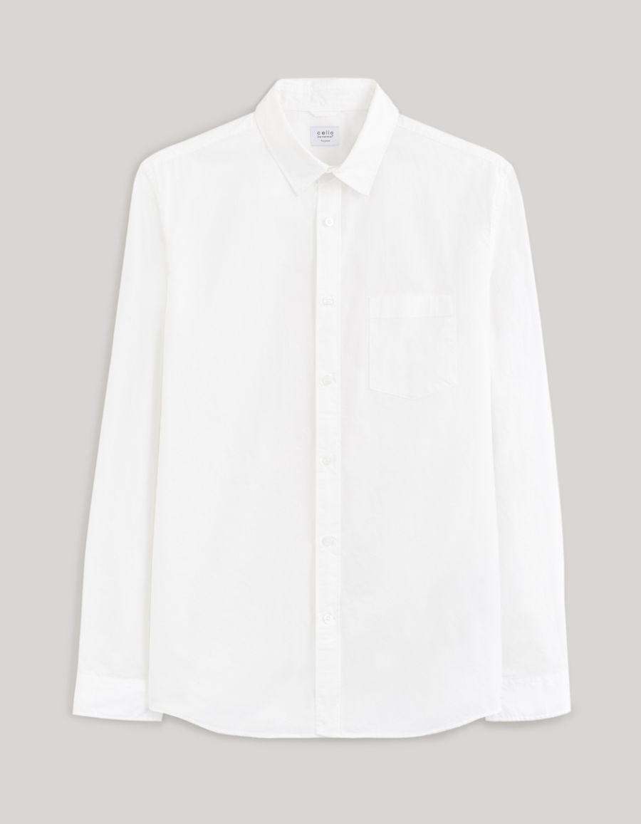 Proposée ici en blanc, cette chemise homme à manches longues apporte couleur et lumière à n'importe quelle tenue. Confectionnée dans une popeline « craquante » 100 % coton, elle arbore en outre un petit col français et une poche sur la poitrine. Matière P