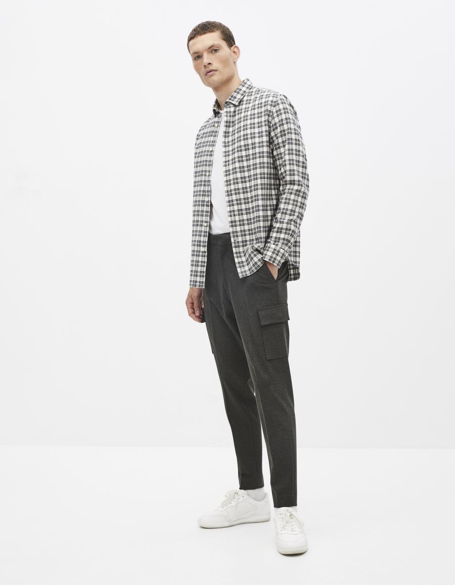 Chemise à carreaux pour homme, avec manches longues et col français. Vous l'assortirez, dans un style casual cool, avec un jean et des baskets. La composition de la chemise est 100 % coton. Elle pourra aussi bien être portée ouverte que boutonnée.