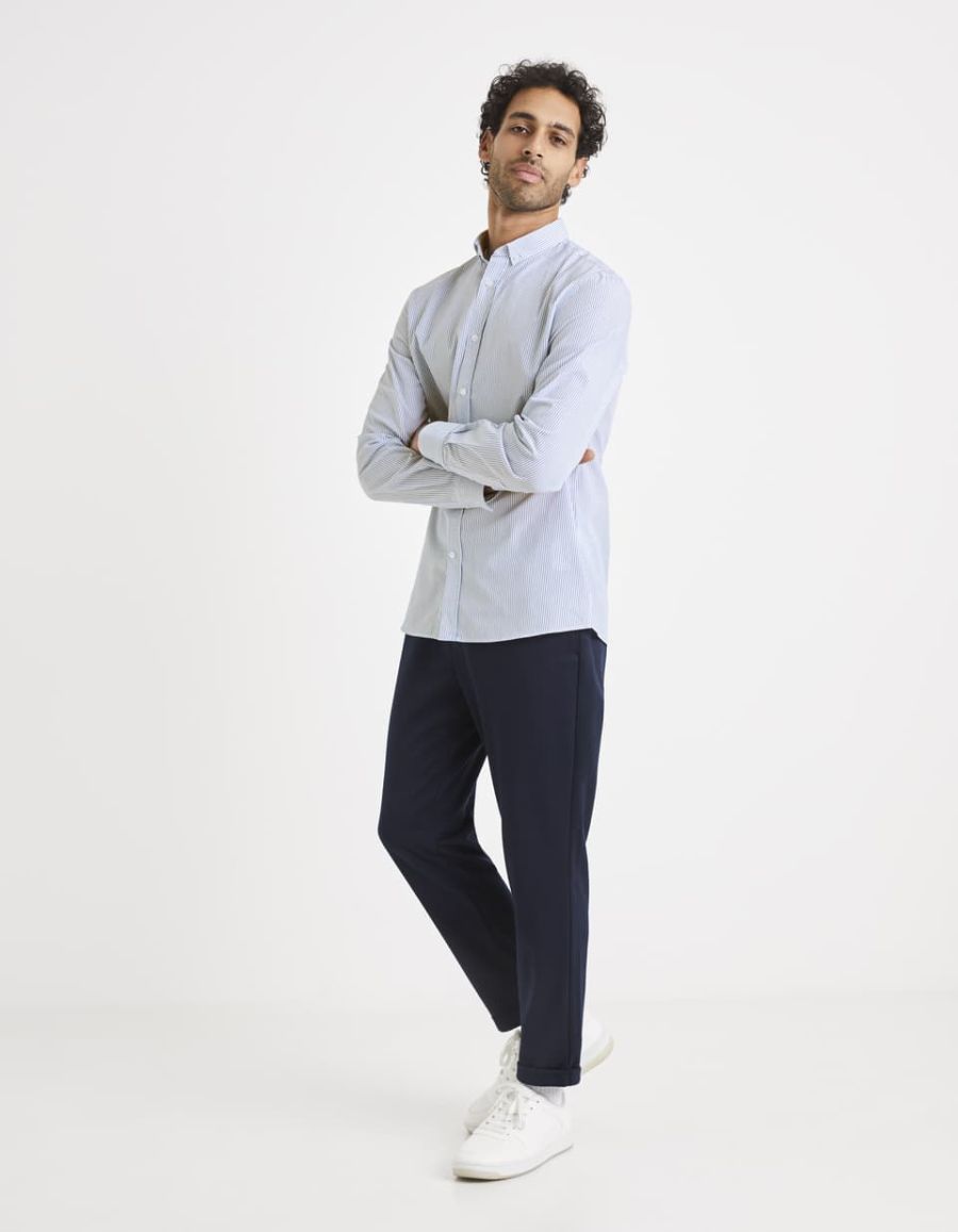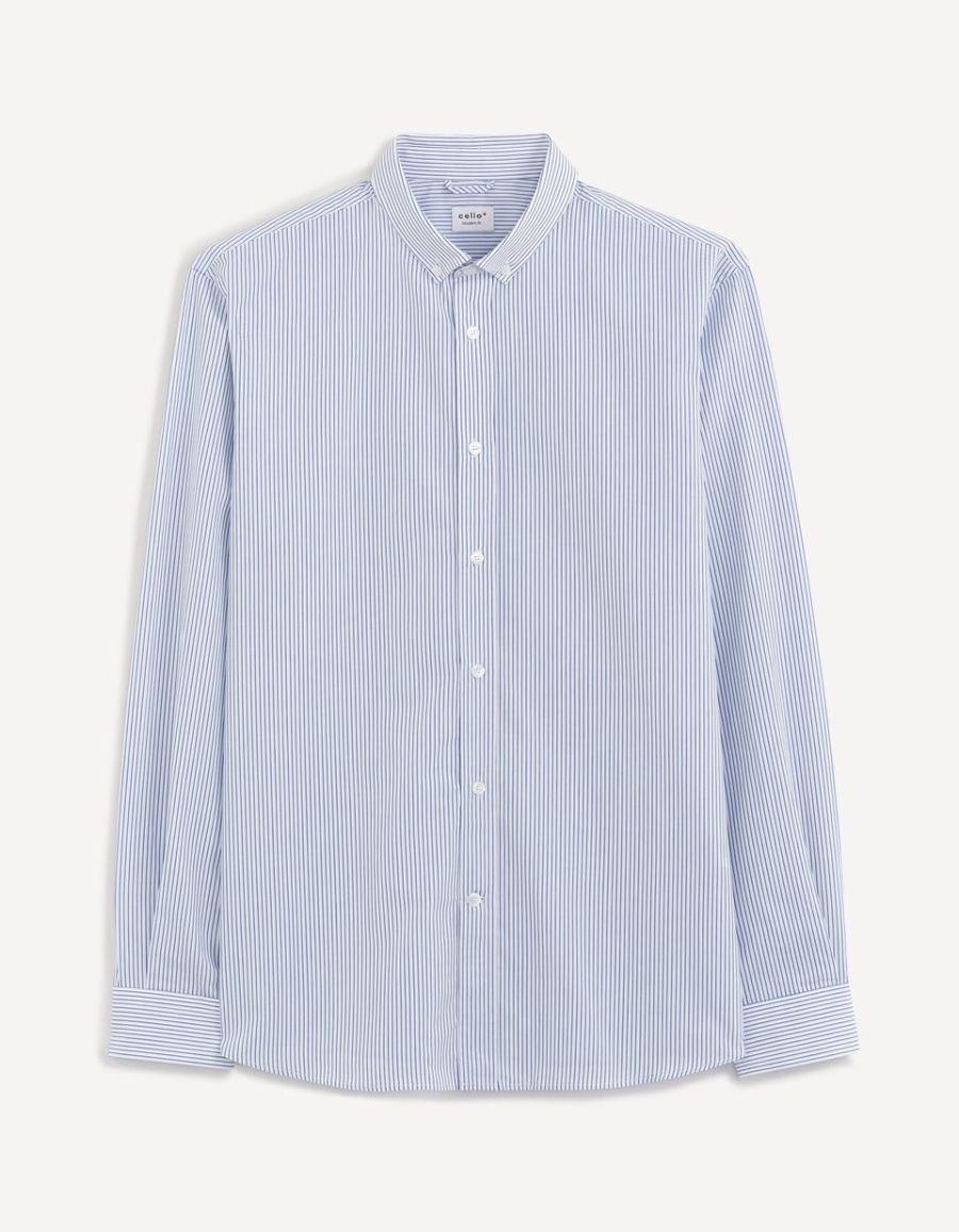 Pour changer du motif carreaux très en vogue cette saison chez l'homme, celio vous propose cette jolie chemise à rayures bleue. Car ne l'oublions pas tout de même, les rayures sont indémodables dans le vestiaire masculin ! Cette chemise a un col boutonné,