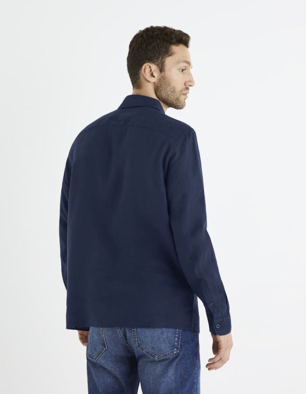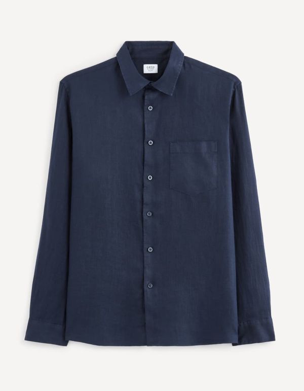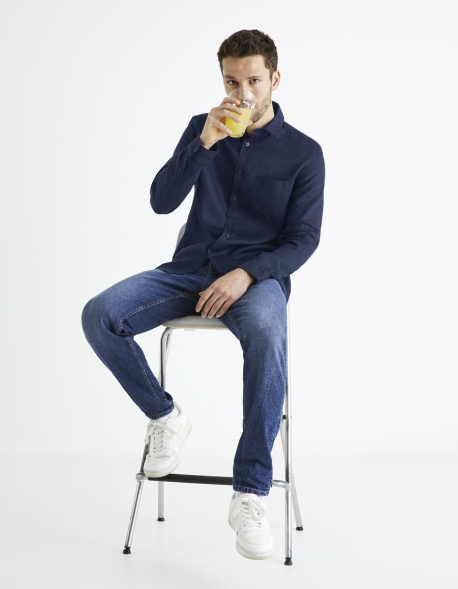 Le tissu léger de cette chemise pour homme est 100 % lin pour un vêtement frais et confortable en été. Vous pourrez la porter avec un jean pour un style casual chic. La chemise a des manches longues, une coupe regular et un col français.