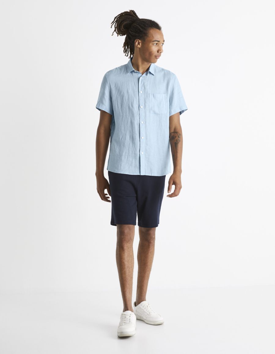 Pour célébrer le retour des beaux jours, cette chemise en lin est légère, fraîche et confortable. C'est la pièce qu'il vous faut ! Ce modèle uni à manches courtes s'assortit facilement aux autres pièces de votre garde-robe. Sa coupe regular la rend très a