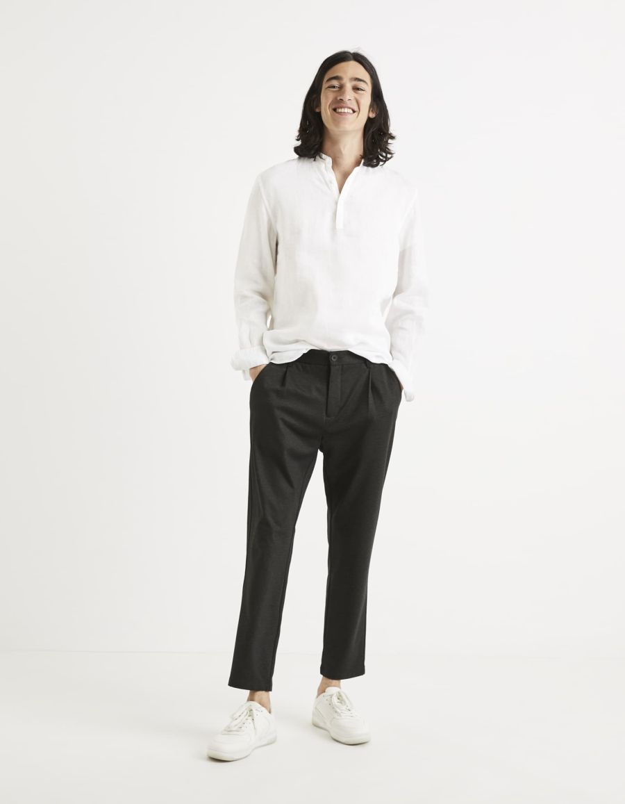 Chemise regular 100% lin col mao