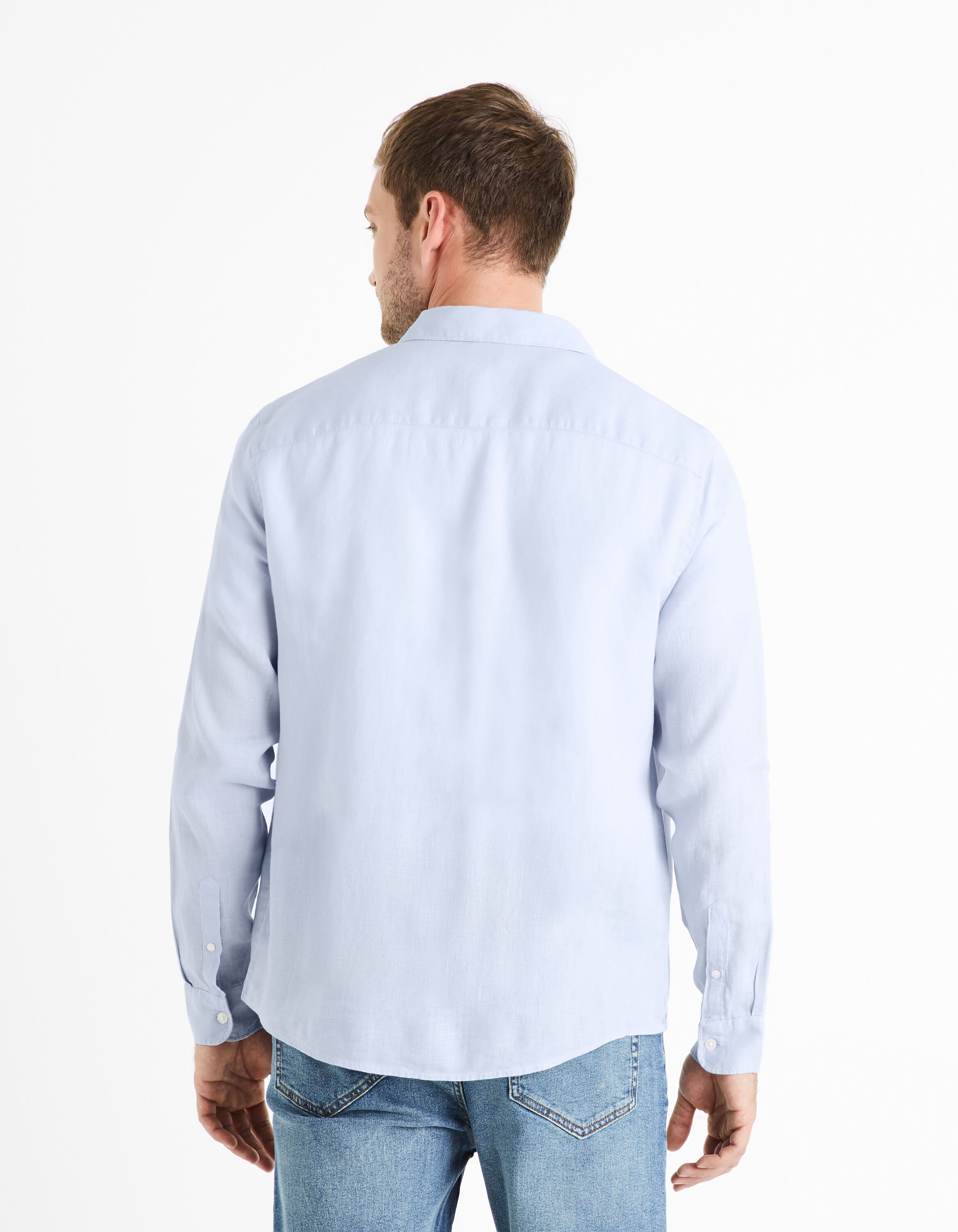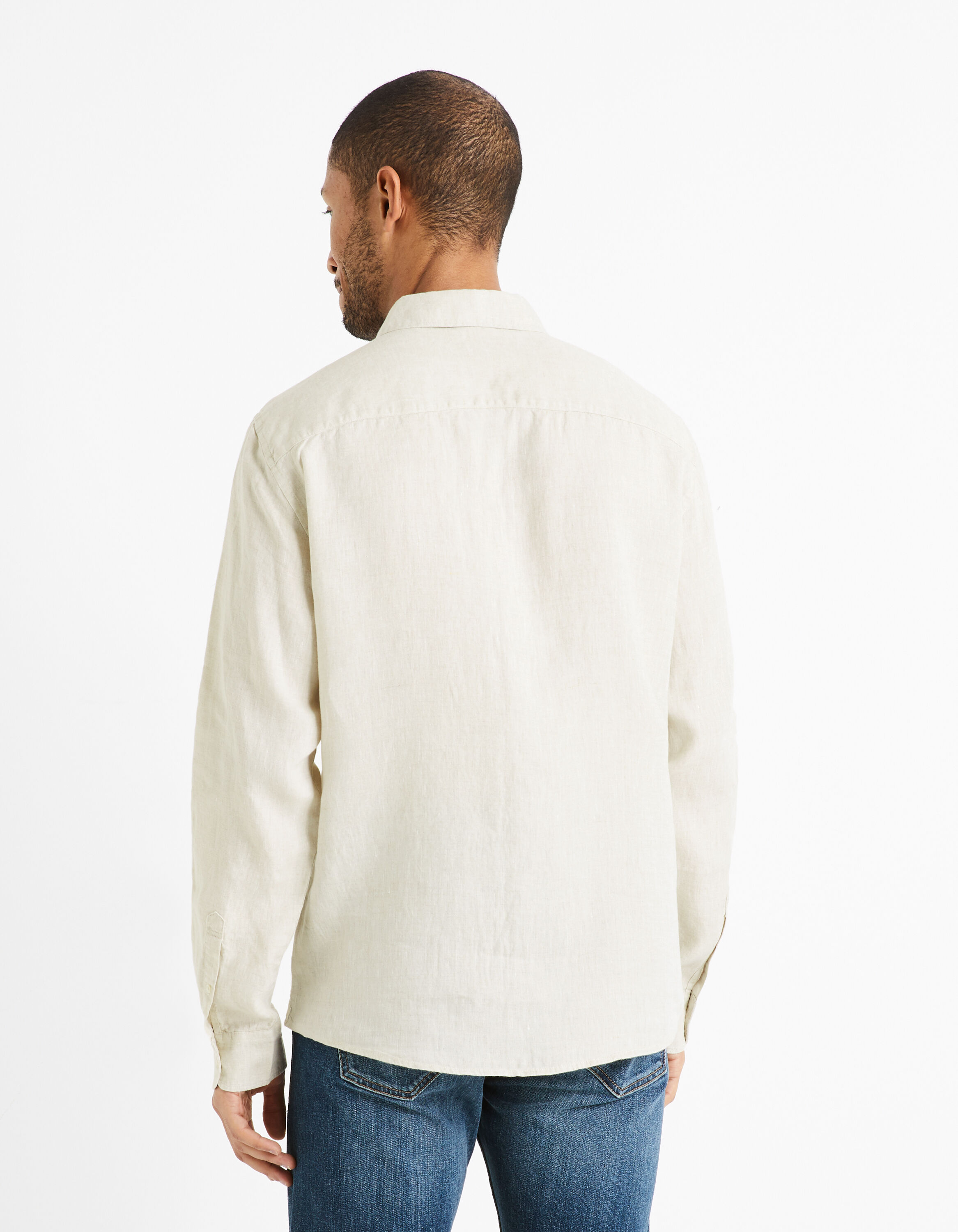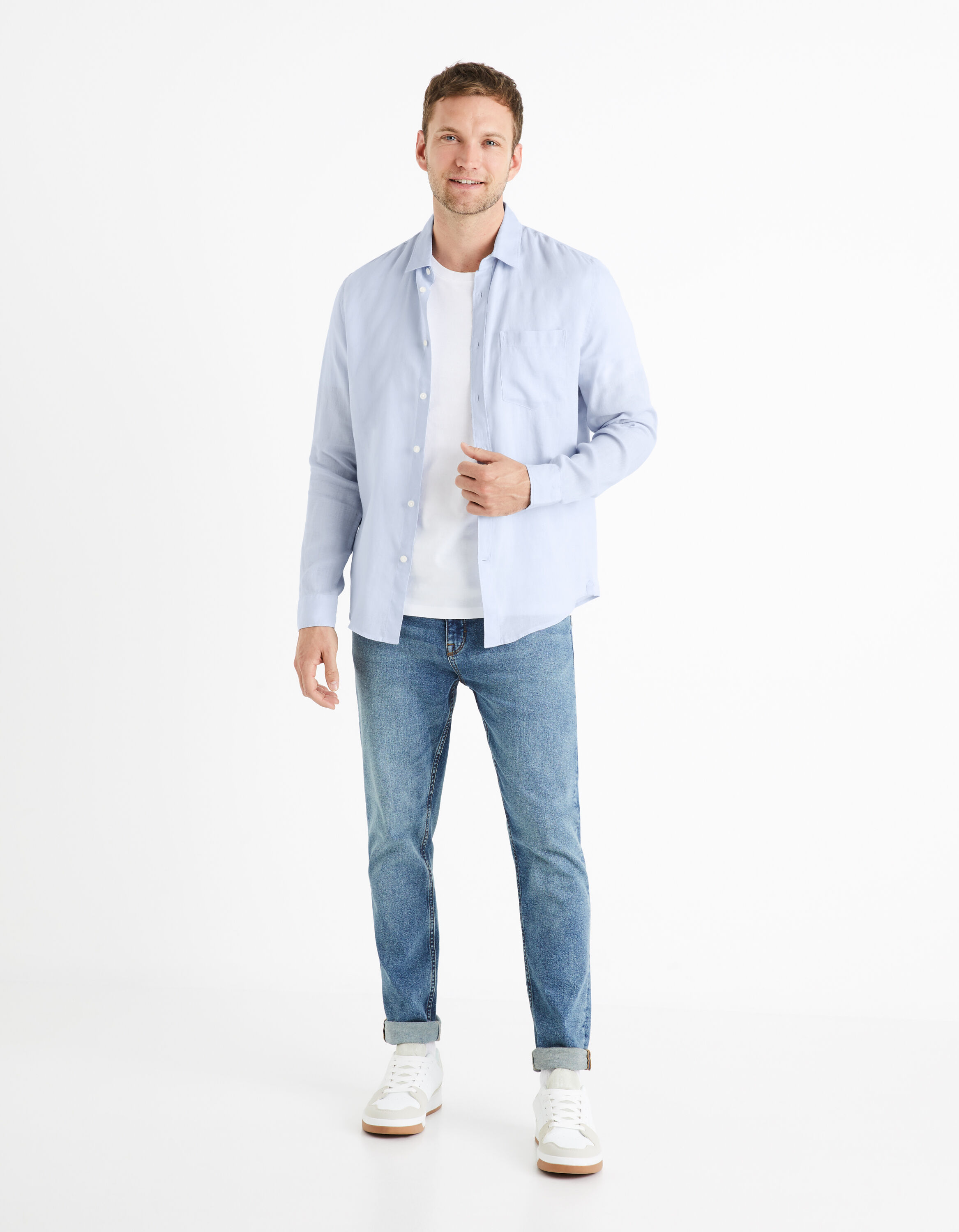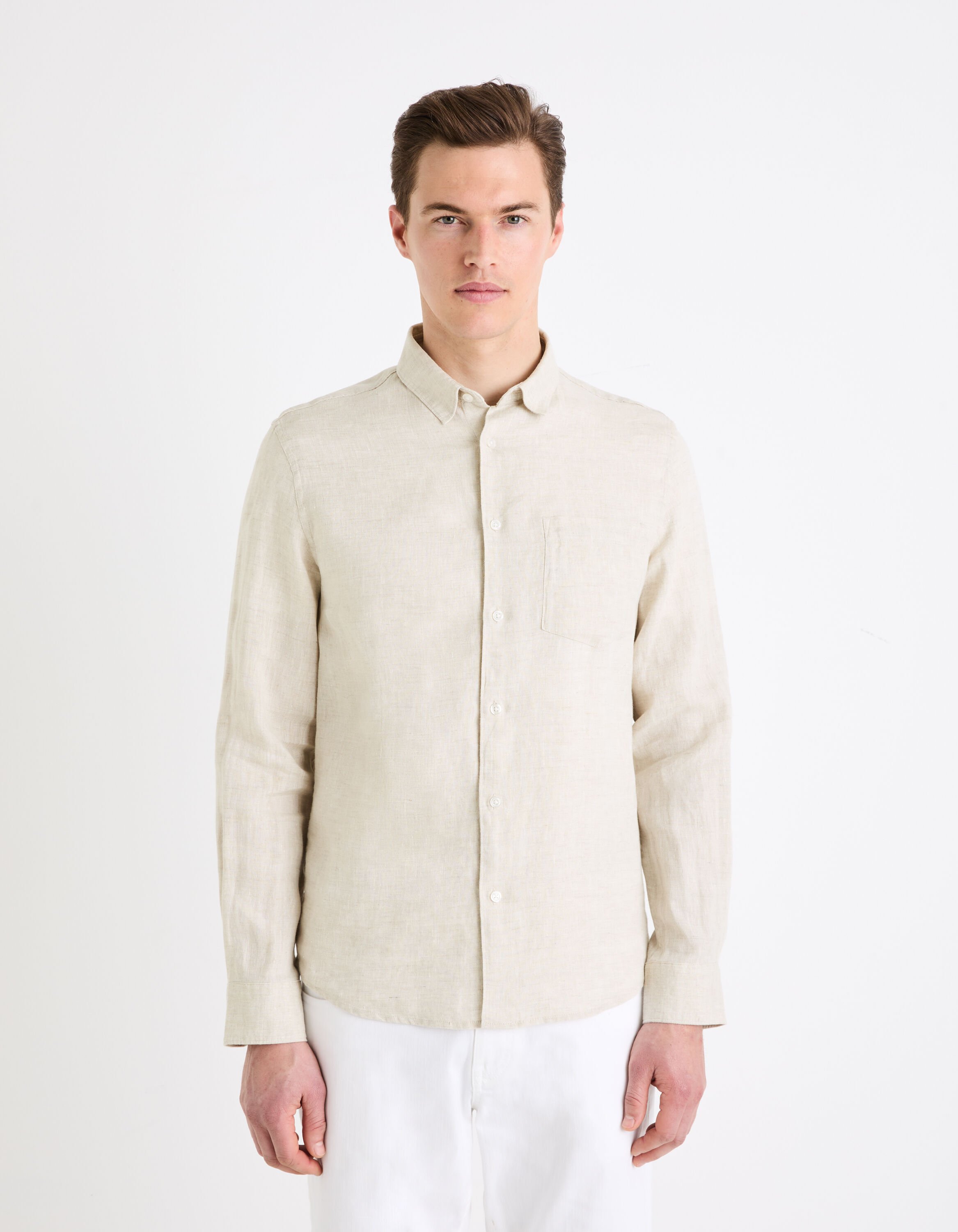 L'élégance et le confort de la chemise homme 100 % lin en font un indispensable de votre dressing. Vous la porterez avec un pantalon en toile ou tout simplement avec un jean. La chemise a une poche poitrine et un col français. Matière naturelle, respirant