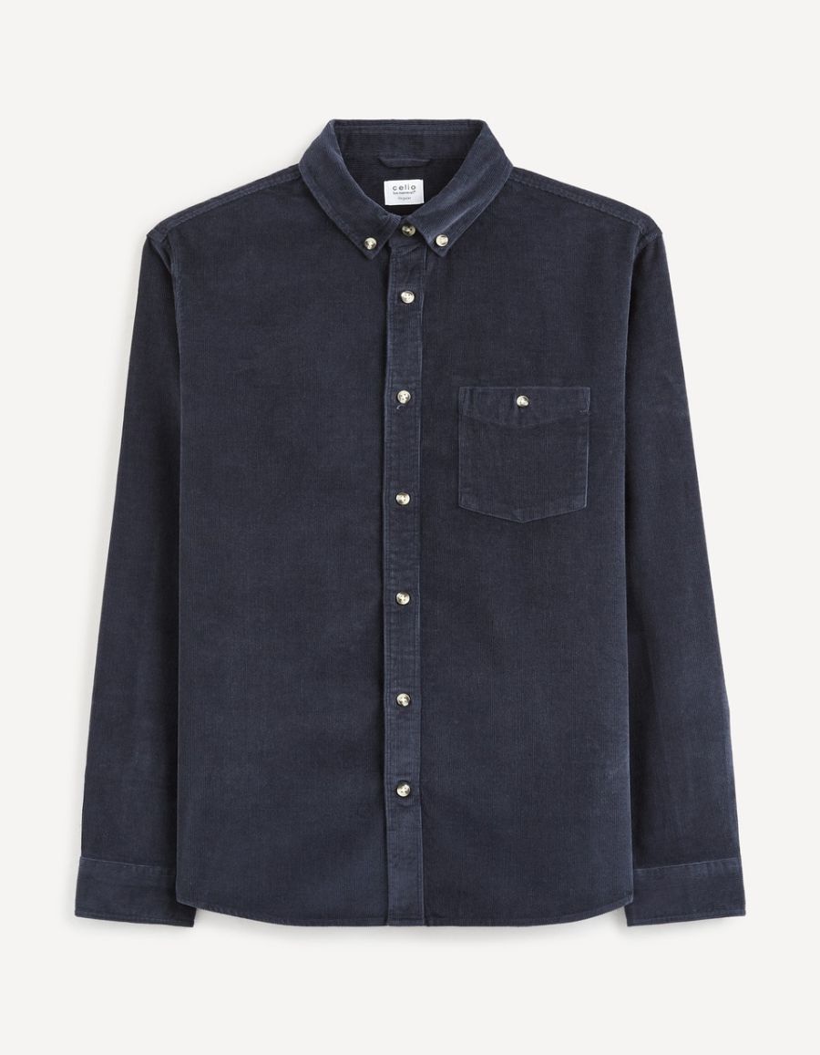 Adoptez la tendance velours côtelé avec cette chemise pour homme à la composition 100 % coton. Vous la porterez facilement sur un jean, dans un esprit décontracté. La chemise a une poche boutonnée sur la poitrine et un col américain dit également boutonné