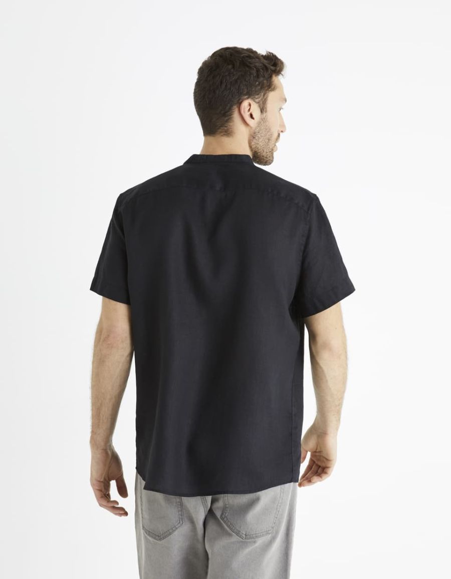 Chemise regular col mao 100% lin