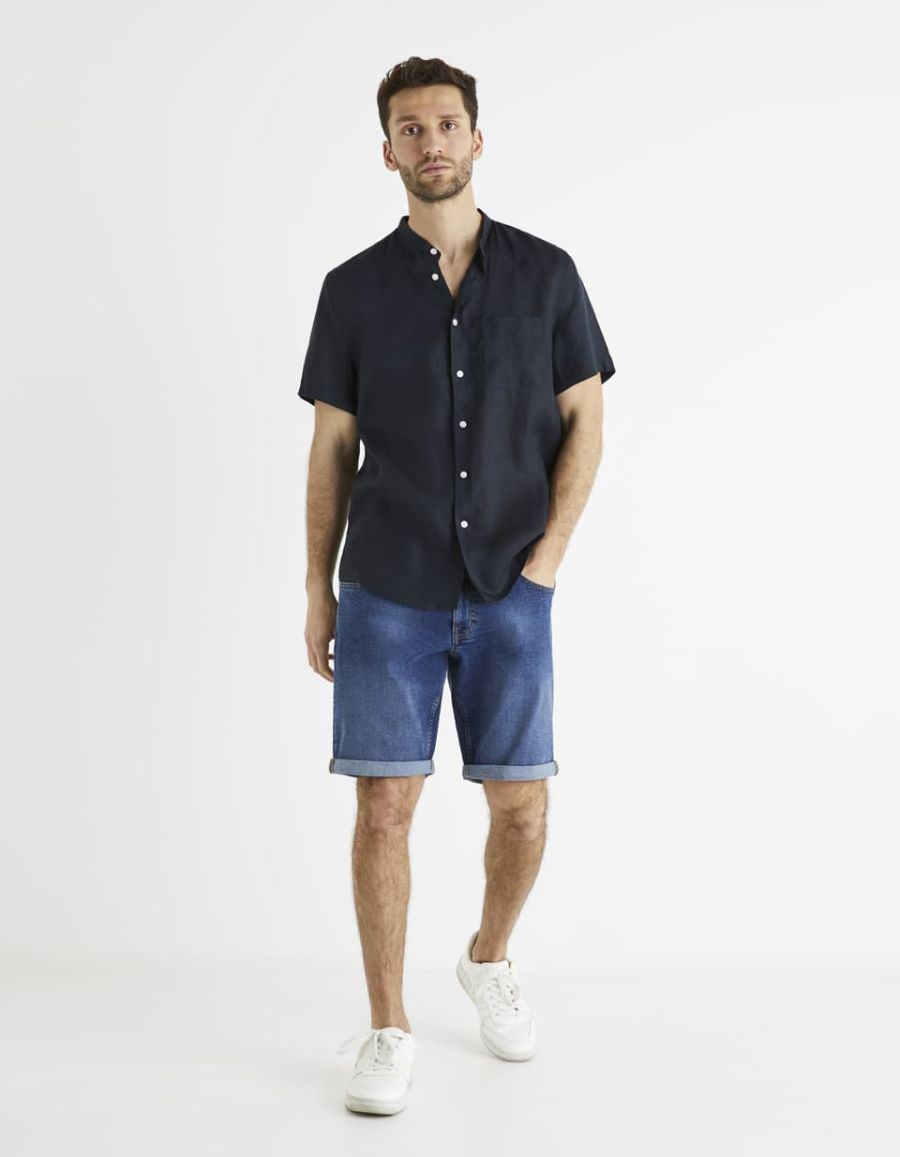 Pour célébrer le retour des beaux jours, cette chemise en lin pour homme est légère, fraîche et confortable. C'est la pièce qu'il vous faut ! Ce modèle uni à manches courtes et col mao s'assortit facilement aux autres pièces de votre garde-robe. Sa coupe