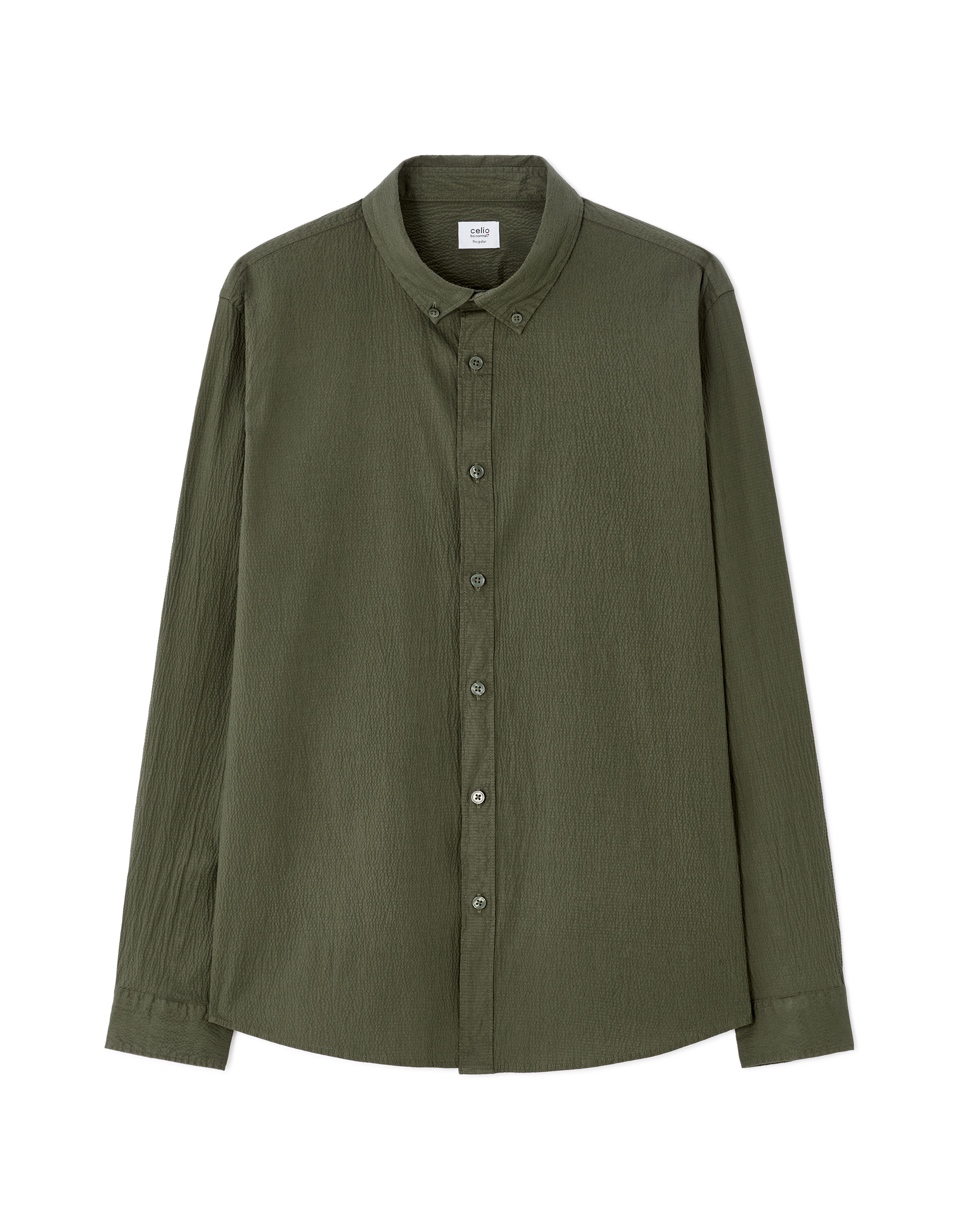 Chemise regular en seersucker - kaki