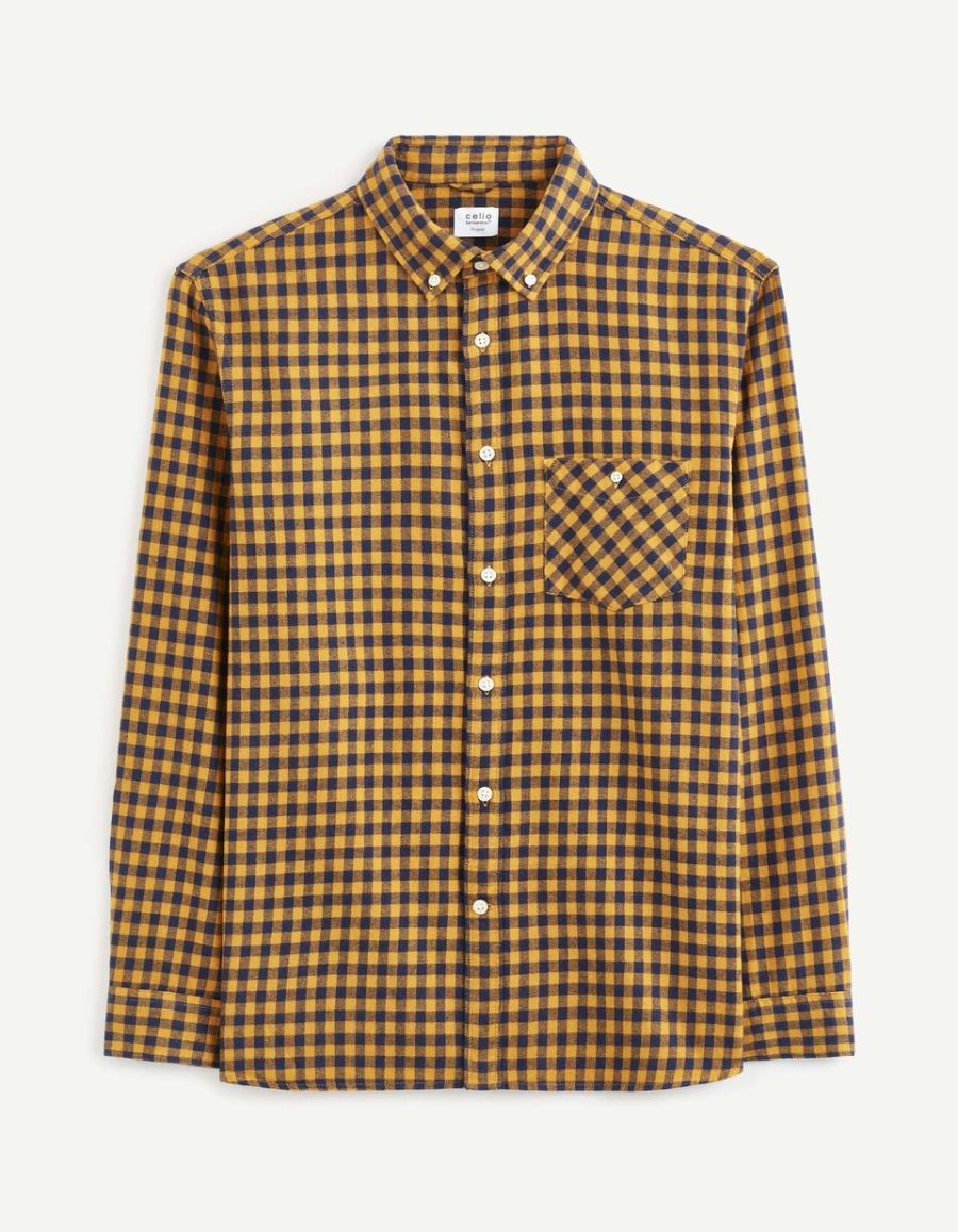 Chemise regular flanelle 100% coton à carreaux - jaune