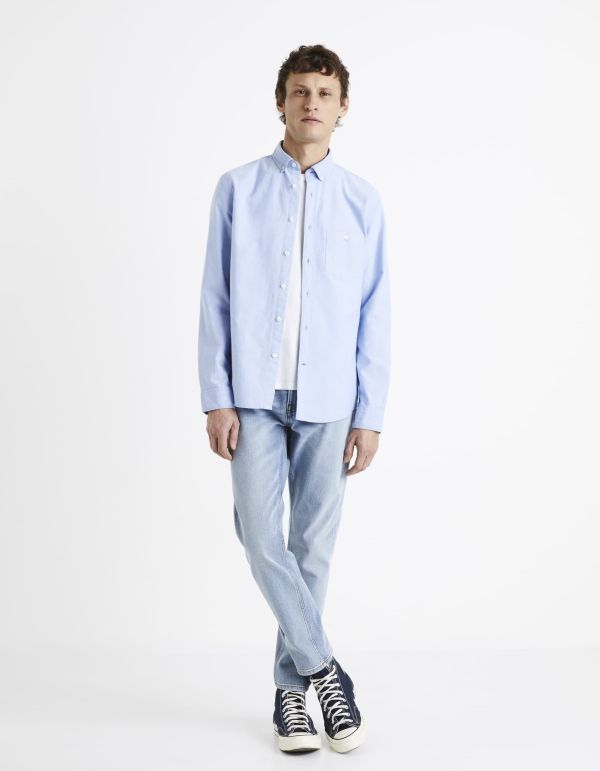 L'élégance est au rendez-vous avec cette chemise Oxford 100% coton et manches longues. Pièce essentielle du vestiaire pour homme, ce modèle présente une coupe regular, un col américain boutonné et un traitement qui permet un repassage facile. Il se porte
