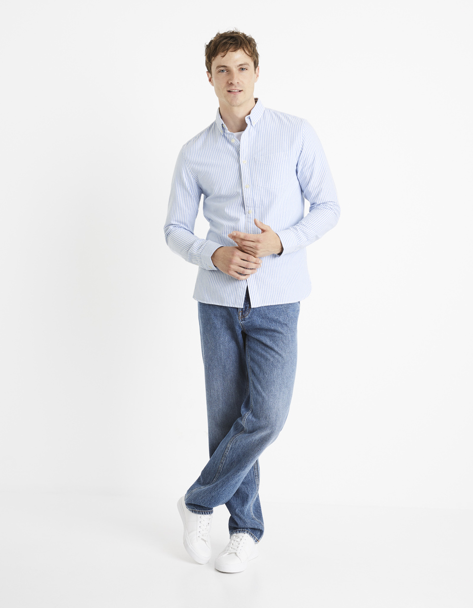 La chemise Oxford est le modèle qu'il vous faut pour accompagner un costume. Avec ses rayures, cette chemise homme apportera le détail qui fait tout à votre tenue. Elle est 100 % coton, avec un col boutonné et une poche poitrine.