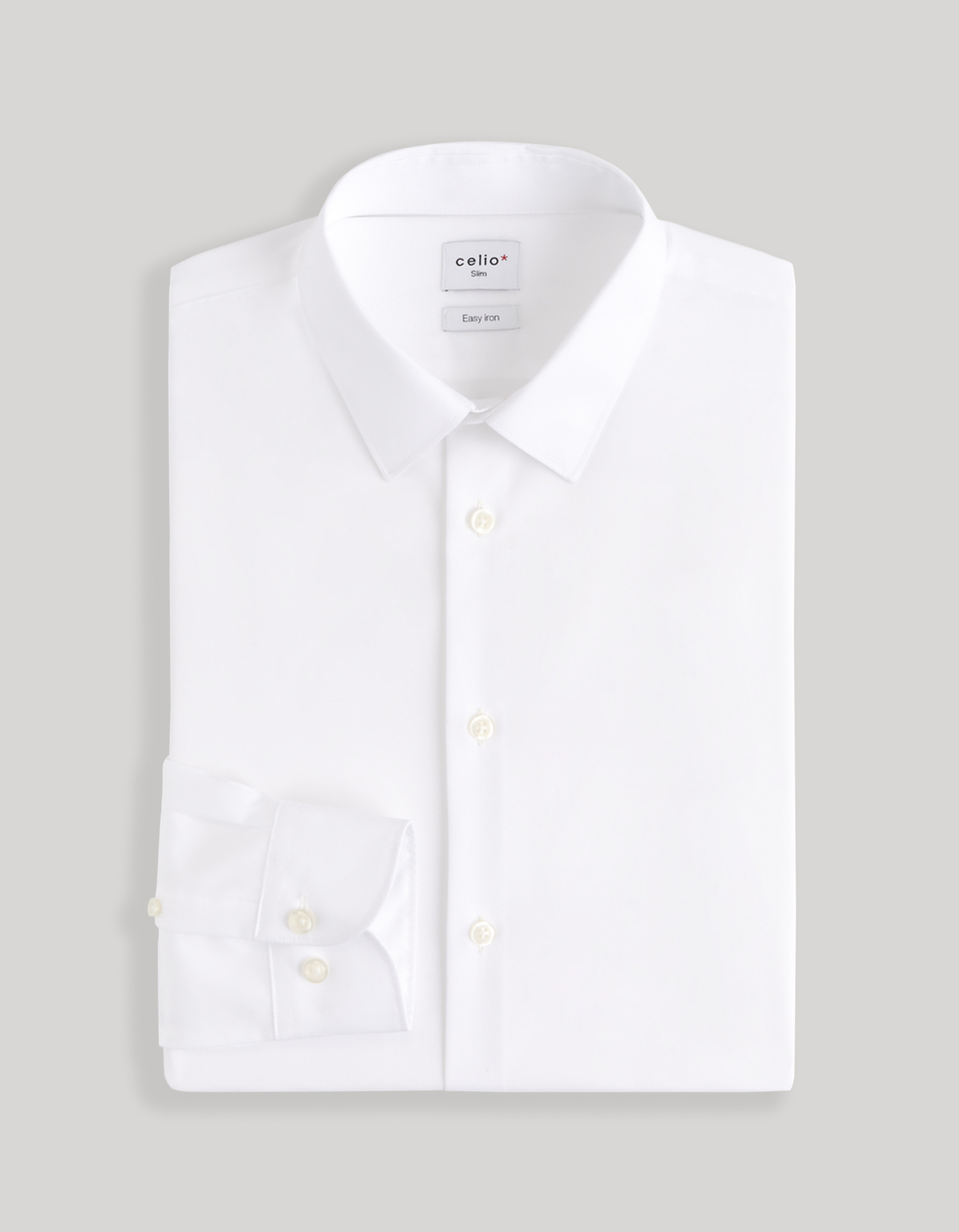 Facile à repasser et indémodable, cette chemise formelle en popeline double retors unie est aussi élégante que pratique : son tissu 100% coton au traitement infroissable rend le repassage optionnel après séchage sur cintre. Avec sa coupe slim et son col f
