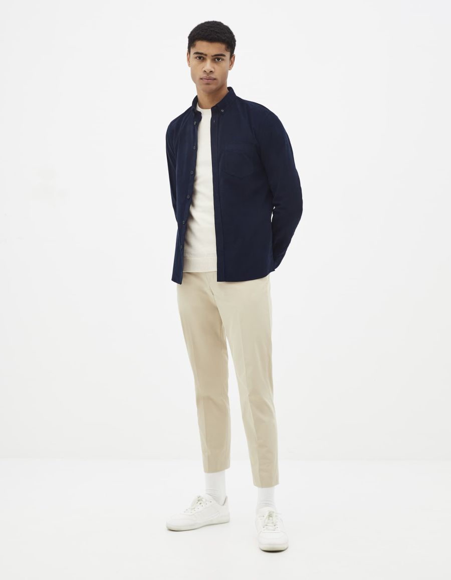 Adoptez la chemise pour homme en velours très fin, à assortir à un jean et des baskets, dans un esprit casual cool. La chemise a une poche poitrine, une coupe slim, un col américain et des manches longues. Sa composition est 100 % coton.
