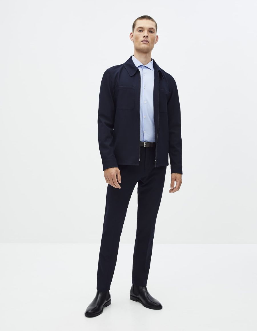 Chemise à manches longues pour homme. Elle sera parfaite pour accompagner un look habillé, portée avec un costume. Sa coupe slim met la silhouette en valeur et son petit col italien est très élégant. La composition est 100 % coton. Le look d'une chemise f