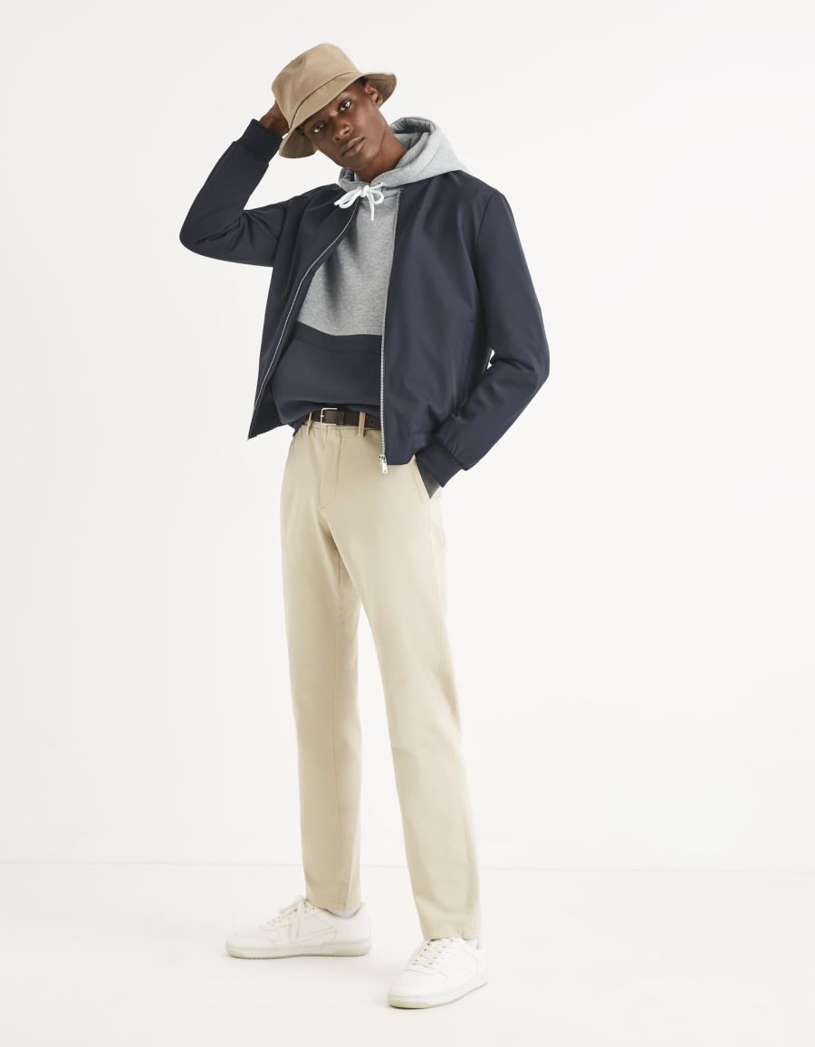 Pantalon slack, fit slim.Matière twill bi-stretch en coton biologique.