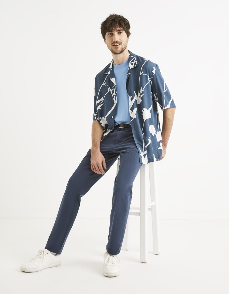 Pantalon chino, coupe slim. Matière twill bi-stretch en coton biologique.