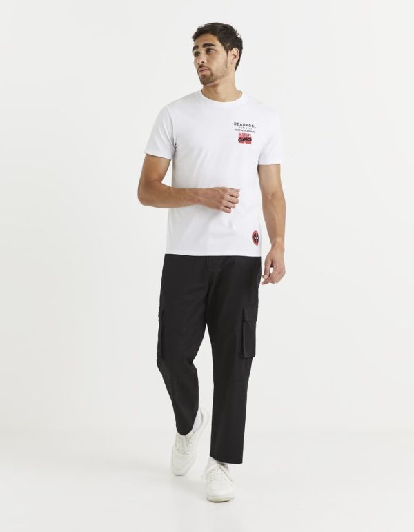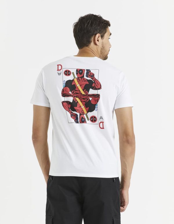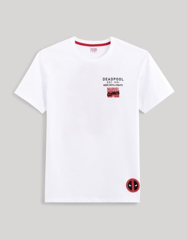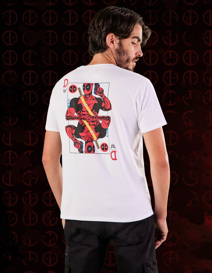 Vous adorer l'univers Marvel comics, et notamment celui de Deadpool ? Découvrez ce t-shirt blanc 100% coton avec le héros Deadpool (alias Wade Wilson) imprimé en grand à l'arrière du t-shirt. Vous retrouverez également le logo Marvel Comics sur le devant