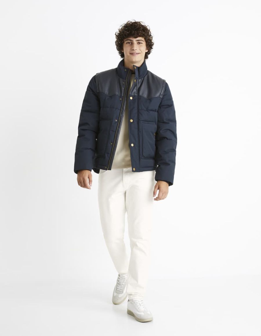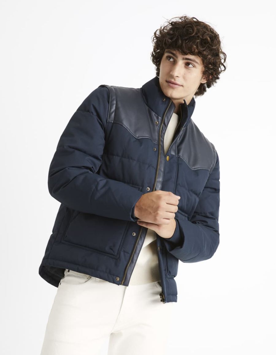 Avec cette doudoune bleu marine pour homme, vous serez totalement protégé du froid. Son rembourrage en matériau recyclé fait de ce produit un vêtement aussi écolo que tendance. Sur l’extérieur, un traitement déperlant le rend imperméable et confortable. S