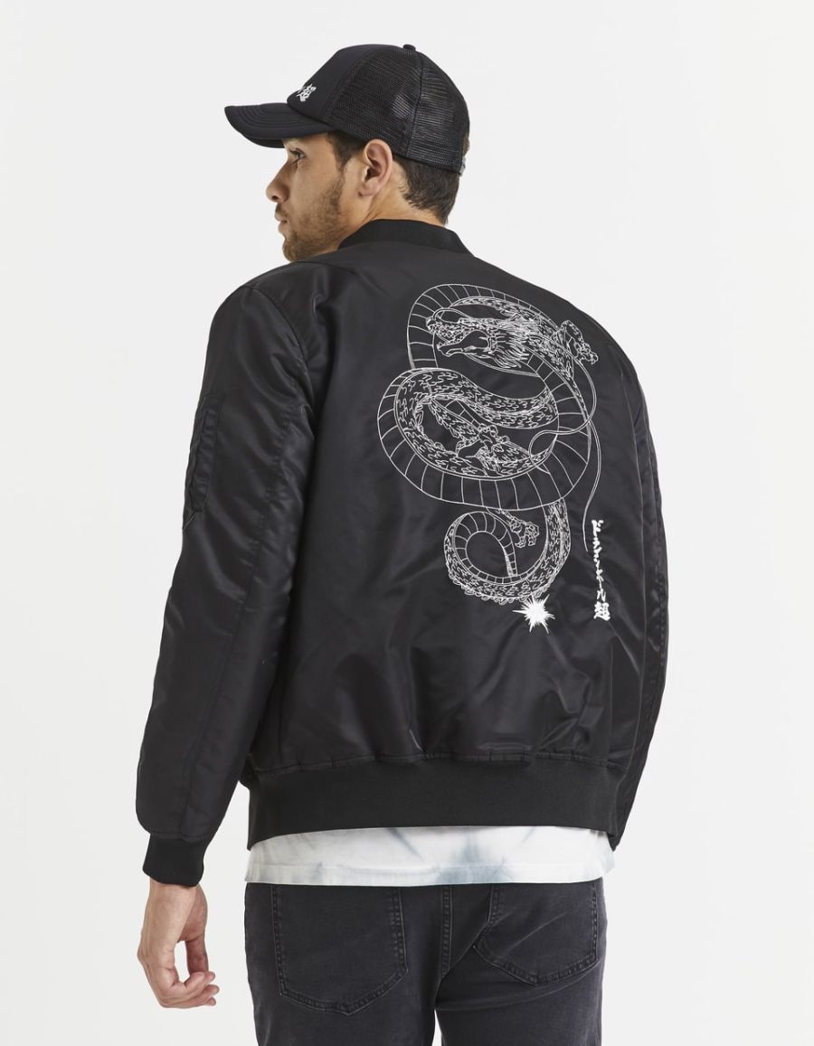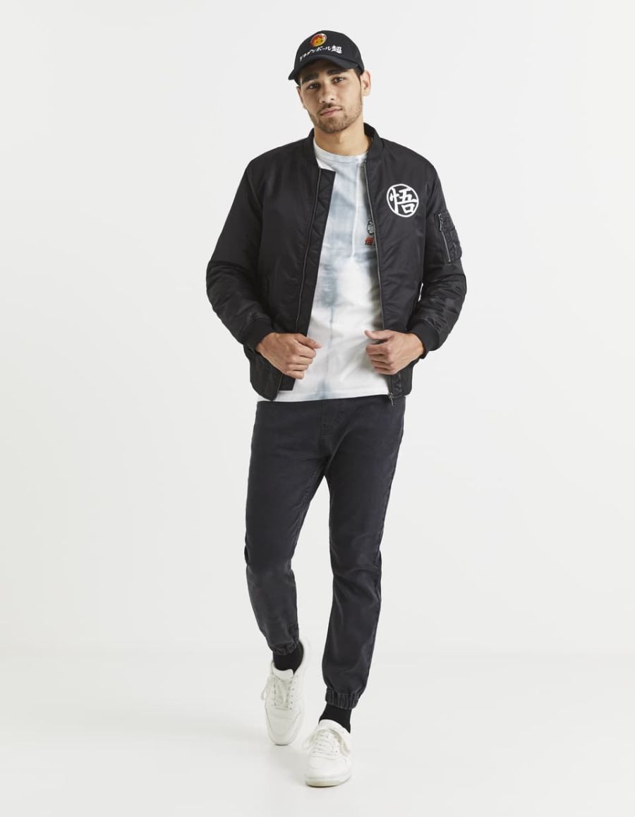 Pièce phare de la collection Dragon Ball Super, ce bomber noir pour homme possède sur la poitrine le kanji de Goku. Au dos, le dragon Shenron apparait en grand, avec le nom de l’animé Dragon Ball Super écrit en japonais.