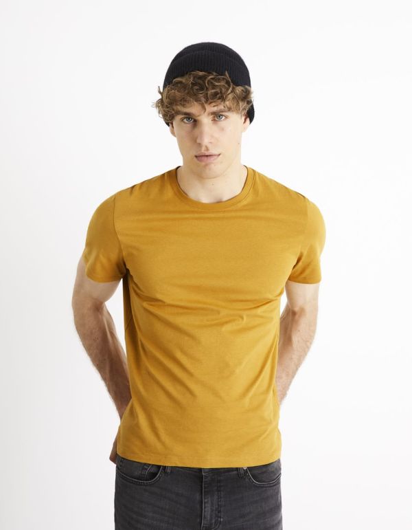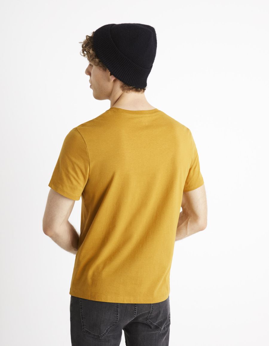 Vous aimerez porter ce t-shirt jaune manches courtes pour homme, dont le tissu à la composition 100 % coton est très confortable. Le t-shirt col rond coupe regular, c’est parfait pour les hommes qui enfilent le premier haut qui leur passe entre les mains
