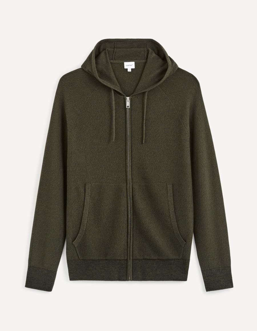 Associé à un pantalon blanc, noir ou marron, ce gilet zippé kaki pour homme se porte facilement en journée. Il donne une allure sportswear avec son tissu 100 % coton, ses larges poches plaquées et sa capuche à cordons.